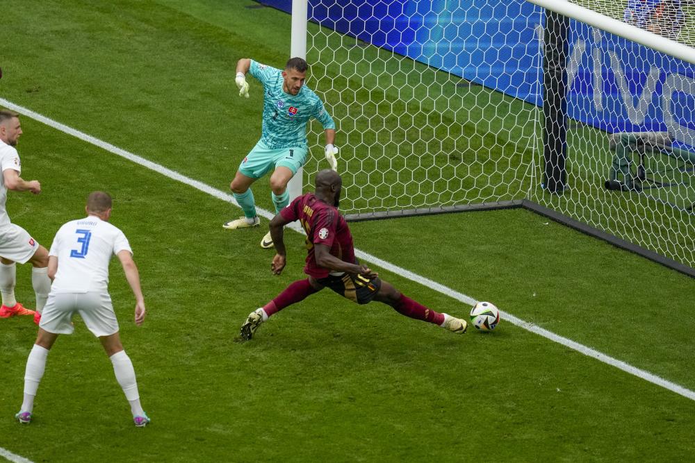 A belga Romelu Lukaku kétszer is betalált a szlovák kapuba, de mindkét gólját érvénytelenítették (AP Photo/Themba Hadebe)