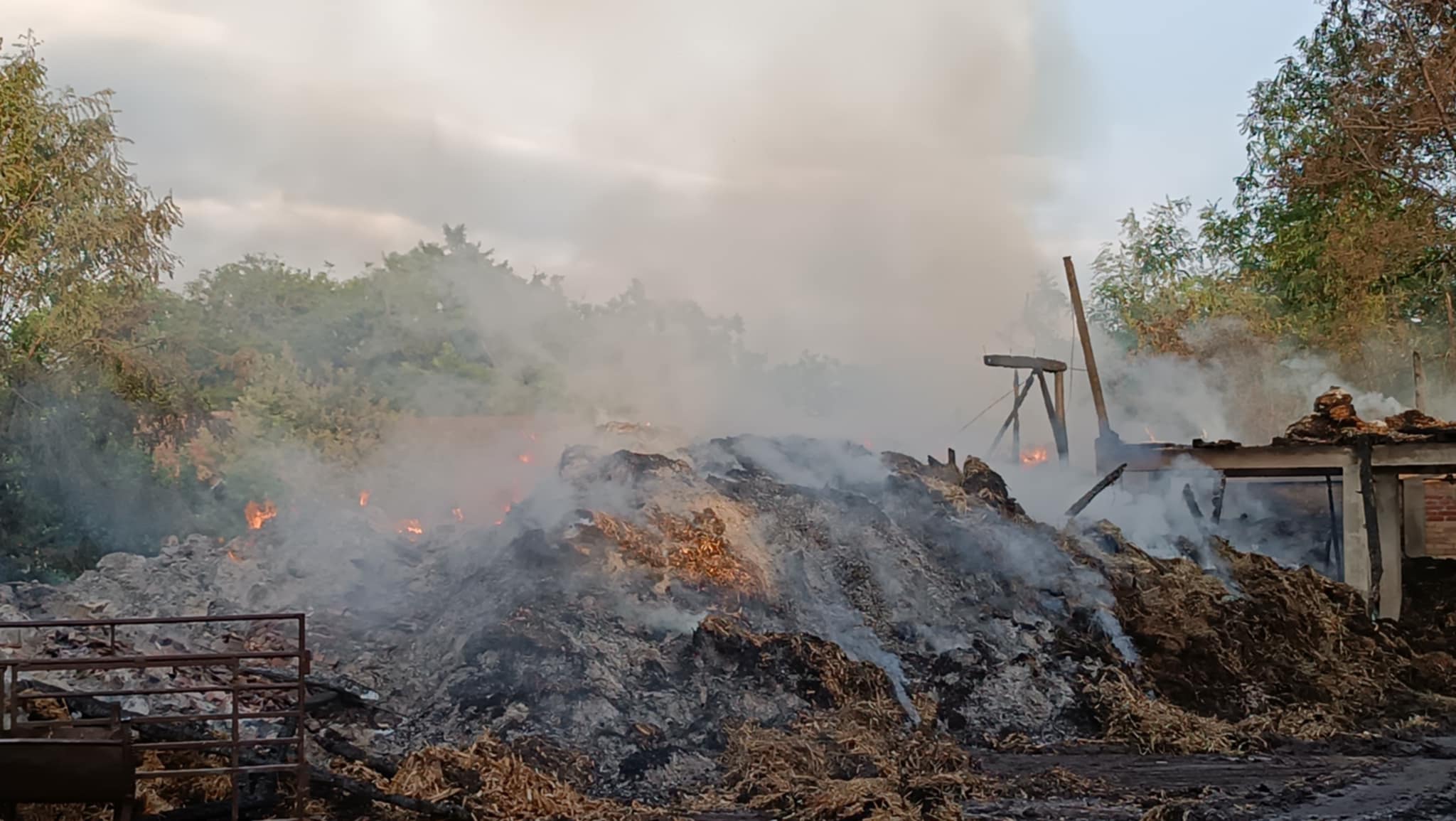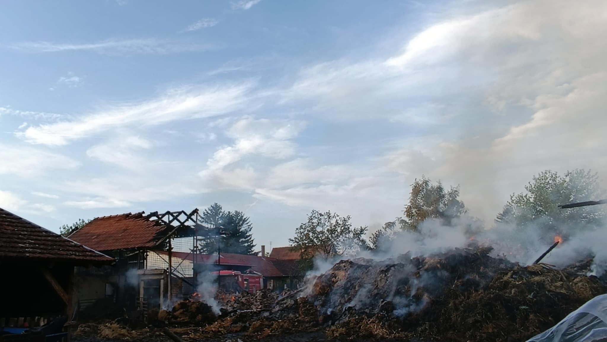 Az udvaron a takarmány még füstöl, ég. Az anyagi kár hatalmas. A jószágok egy része a szomszédoknál, van, amelyiket az udvar másik felén el tudtak keríteni. A tűzoltók a helyszínen ellenőrzik a helyzetet.