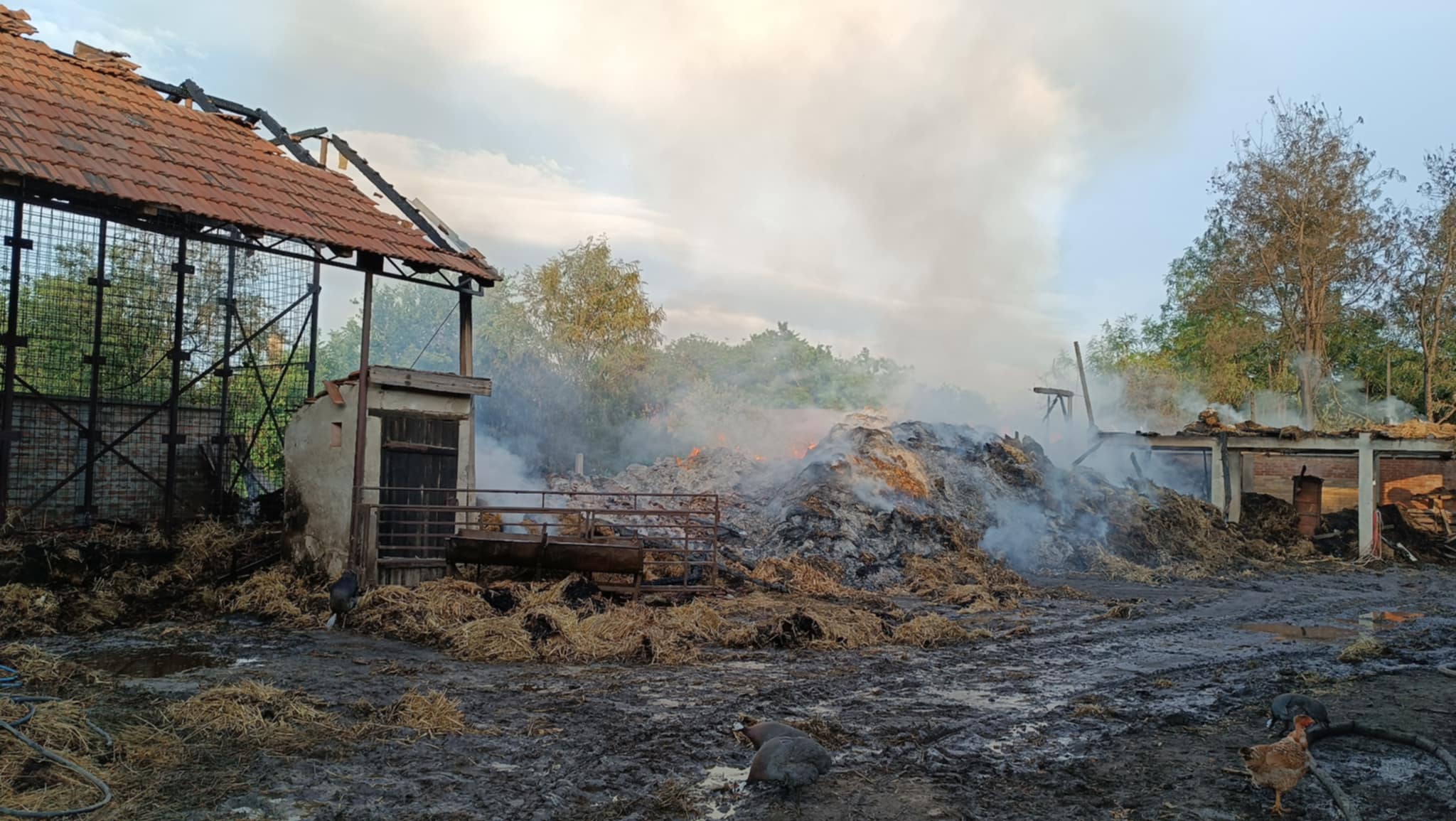 Belecsapott a villám a nagyfészerbe, és mivel a portánk L alakban végig fészerekből áll, ahol szálas takarmányt tartunk, az egyik a másik után kapott lángra, mind végig égett a takarmány. Széna, szár, szalma, rozs, tehát tulajdonképpen mindenféle takarmányt tartottunk, több ezer báláról beszélünk. Nem lehet ezt eloltani, meg kell várni, hogy magától leégjen, a tűzoltók hajnalig itt maradnak, figyelik a helyzetet, de ez napokig eltarthat. A jószágokat könnyebb sérülések érték, az emberek segítségének köszönhetően az állatok megmenekültek, hiszen annyira leblokkoltak, hogy ki kellett őket vonszolni az istállóból. A helyi tűzoltók, és a szomszédok azonnal beálltak segíteni, a szabadkai tűzoltókra kicsit várnunk kellett, de annyira gyorsan terjedt a tűz, borzasztó ezt végig nézni-mondta lapunknak a csantavéri Zsoldos Oláh Mónika.