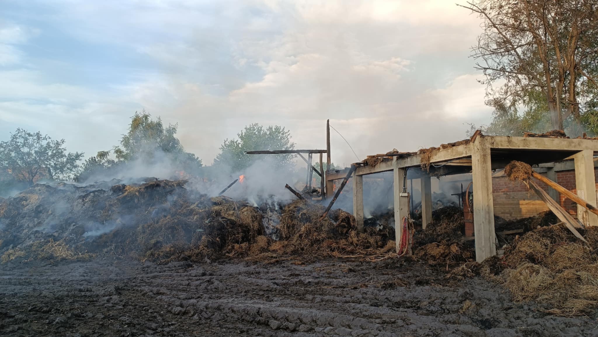 Az udvaron a takarmány még füstöl, ég. Az anyagi kár hatalmas. A jószágok egy része a szomszédoknál, van, amelyiket az udvar másik felén el tudtak keríteni. A tűzoltók a helyszínen ellenőrzik a helyzetet.