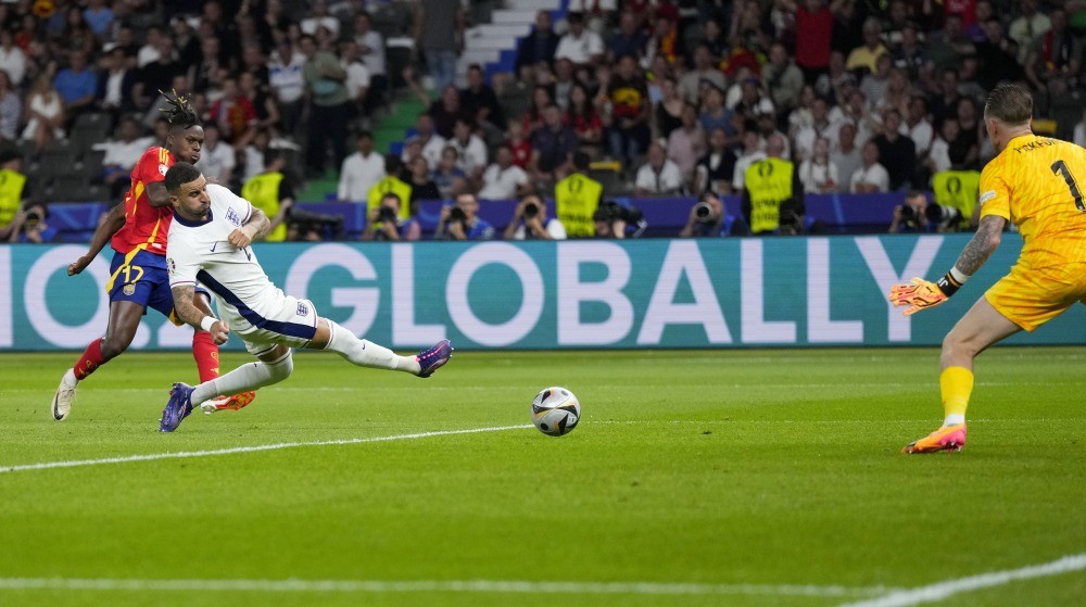 Az első játékrészben nem született gól, azonban a második félidő második percében a szombaton tizenhetedik születésnapját megünneplő Lamine Yamal tette a labát a bal oldalon érkező Nico Williams elé, aki még mielőtt a védő odaért volna, a bal alsóba lőtt, Jordan Pickford tehetetlen volt az erős és pontos lövéssel szemben, így Spanyolország megszerezte a vezetést (1:0).