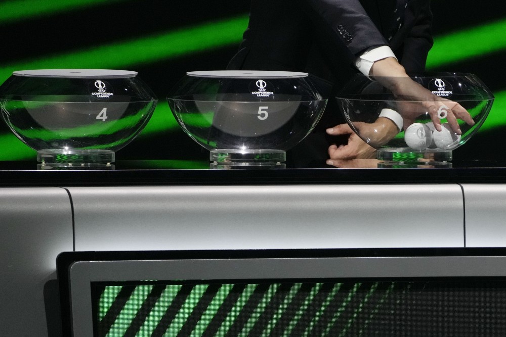 A Konferencia-liga 2024/2025-ös sorsolása Monacóban 2024. augusztus 30-án (AP Photo/Gregorio Borgia)