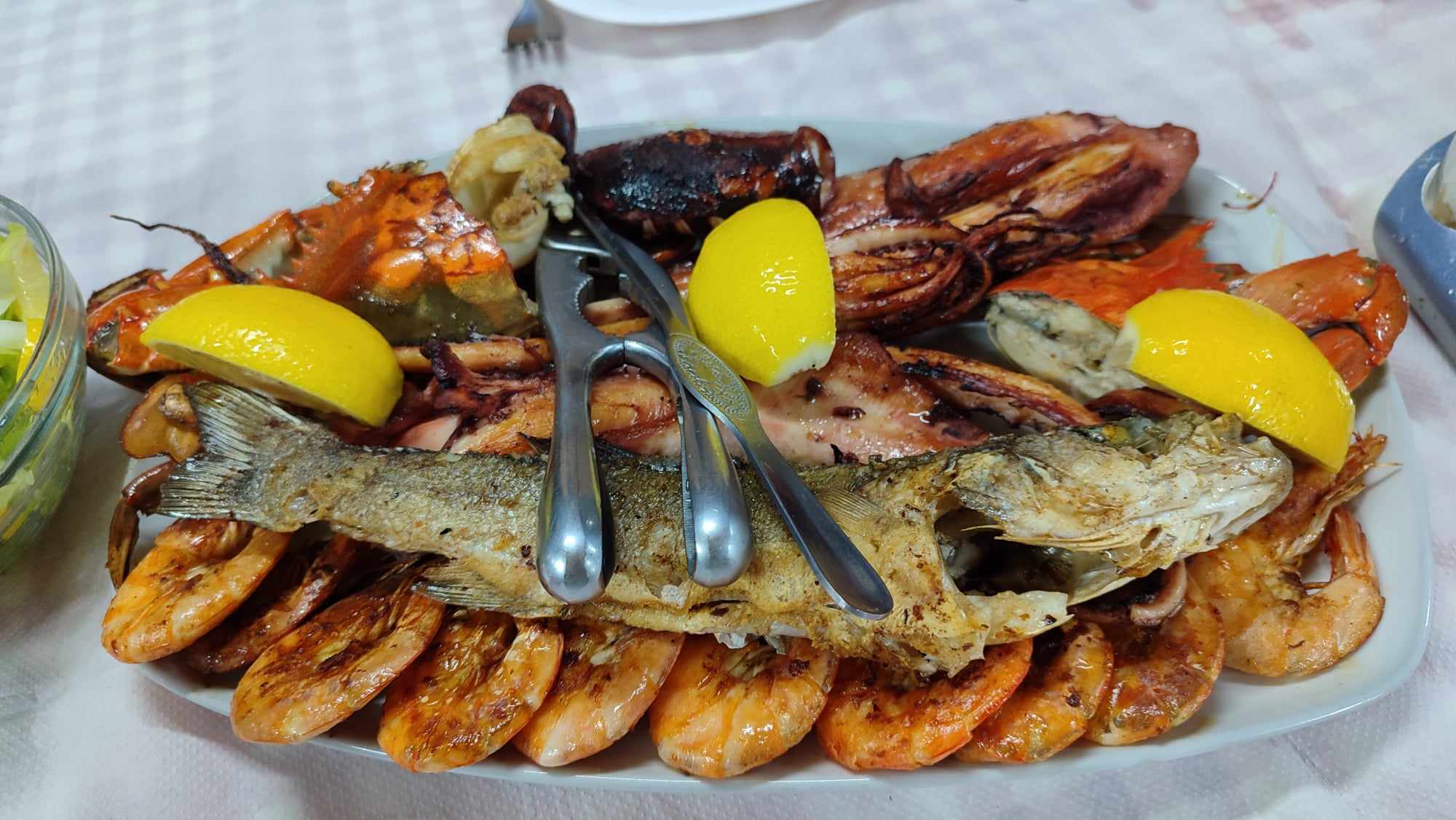 Két üdítő, egy víz, valamint két főre a tenger gyümölcsei tál, garnélával, rákkal, hallal, polippal és tintahallal 35 euró volt. Az árak egyébként két főre mindenhol ekörül alakultak. Kóstoltunk albán fogásokat is, többek között joghurtban főtt kecskét, dolmát, de főleg a halakra, tengeri ételekre koncentráltunk, amelyből szinte végtelen volt a választék.