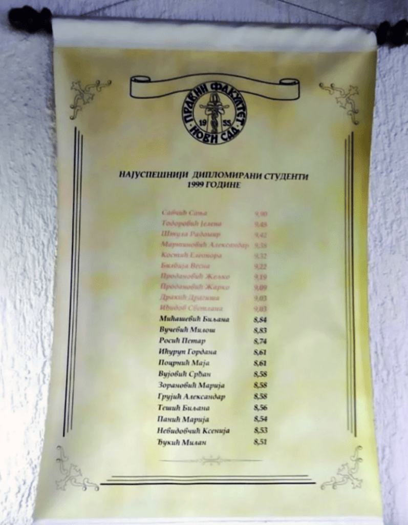 Igen ám, de itt jönnek az én problémáim, mert a már említett életrajza végén ez áll: oklevelet az Újvidéki Jogi Karon szerzett 1999-ben 8,84 átlagos osztályzattal, utána pedig Vranjéban és Gnjilanén teljesítette a katonai szolgálatot. Na mármost az egyetemen a rendes vizsgaidőszak augusztus-szeptemberben van, vagyis csak ezt követően tehetett volna eleget a katonaság iránti kötelezettségének.