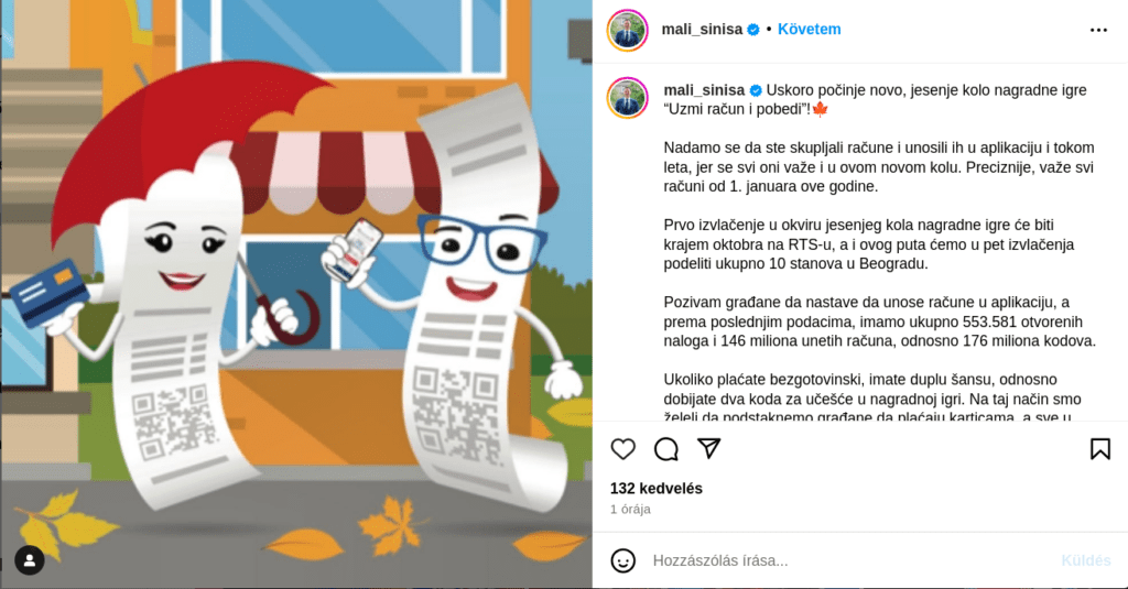 Siniša Mali pénzügyminiszter szombaton bejelentette, hogy hamarosan indul a Vedd el a nyugtát és nyerj elnevezésű nyereményjáték őszi fordulója.