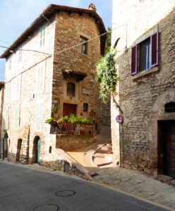 Mindegy, fenn vagyok a falakkal körülvett városka középkori részében. Azért kell ezt így kihangsúlyozni, mert mint Olaszországban annyi településnek, ennek is van egy római-kori, sőt etruszk alapja, Umbriában mindenképpen. A szállást is megtalálom, némi helyi erők segítségével. A szoba, ahol egy éjszakát töltök, egy komolyabb vasúti kabin méretéhez hasonlatos, vagy még inkább egy harmadosztályú hajókajütéhoz, egy ágy és egy folyosó mellette. A kilátás viszont mindenért kárpótol, hiszen egy parkra néz az ablakom, és az ablakban én magam is.
