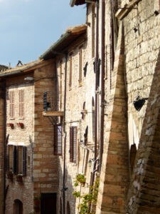 Mindegy, fenn vagyok a falakkal körülvett városka középkori részében. Azért kell ezt így kihangsúlyozni, mert mint Olaszországban annyi településnek, ennek is van egy római-kori, sőt etruszk alapja, Umbriában mindenképpen. A szállást is megtalálom, némi helyi erők segítségével. A szoba, ahol egy éjszakát töltök, egy komolyabb vasúti kabin méretéhez hasonlatos, vagy még inkább egy harmadosztályú hajókajütéhoz, egy ágy és egy folyosó mellette. A kilátás viszont mindenért kárpótol, hiszen egy parkra néz az ablakom, és az ablakban én magam is.