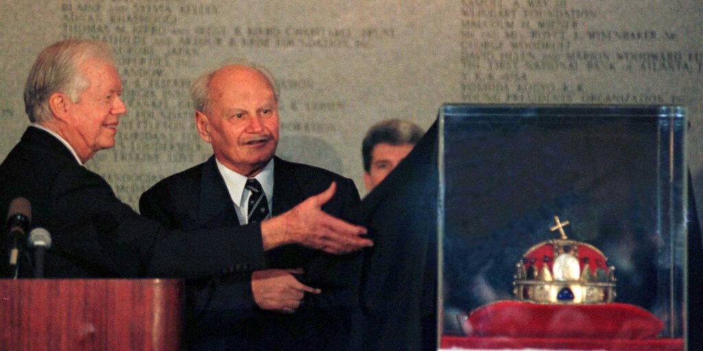 Göncz Árpád magyar köztársasági elnök 1998-ban neki vitte el a magyar korona másolatát Atlantába, mert azt éppen Jimmy Carter nehéz és ellentmondásos, sokat bírált 1978-as döntésével szolgáltatta vissza az USA Magyarországnak.A korona visszaszolgáltatásáról könyvet író Robert King politológus így foglalta össze: „Annak ellenére azonban, hogy a politikai tanácsadókat igencsak nyugtalanították a korona viszszaküldésének várható politikai következményei [kimutatták, hogy a magyar bevándorlók többsége ellenzi azt!], Cartert nem ingatták meg az újraválasztásával kapcsolatos aggályaik.
