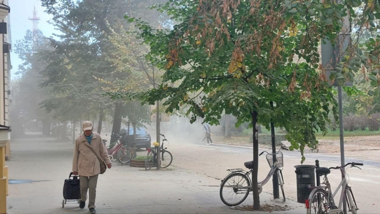 Pár napja egy olvasónk küldte be az alábbi két fotót, amelyen jól látszik, hogy a Posta és a Vuk Karadžić utcában lombfúvókkal próbálják a homokot eltüntetni az aszfaltról, de közben olyan porfelhőt csináltak a munkások, hogy az utcában látni is alig lehetett.