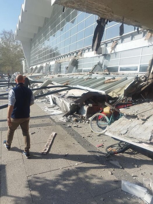 A 021.rs portál azt írja, hogy a bejárat feletti tetőszerkezet szakadt le pénteken 12 óra tájban. Információik szerint a balesetnek több sérültje van, azt egyelőre nem tudni, hogy halálos áldozata van-e a tragédiának.