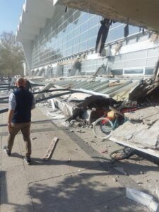 „Én is nagyon sokszor elmentem alatta, amikor az állomásra jöttem-mentem. Mindig az volt a benyomásom, hogy az egy nagyon karcsú, épületstatikailag konzol szerkezetű, könnyű tető. Most, amikor megtörtént ez a tragédia, és néztem a térfigyelő kamera felvételét, akkor jöttem rá, hogy nem erről van szó, mert a konzoltetőnek hitt tető statikailag egyáltalán nem konzol volt. A homlokzaton látni lehetett, hogy a fekete vascsövek, amelyek nagy A betűre emlékeztettek, ez a bejárat fölötti tetőrész függesztve volt a csarnok fölötti tetőre. A csarnok fölötti tetőszerkezet egy fűrészfogas vasbeton szerkezet. Látványos volt kívülről-belülről egyaránt. A végéhez volt függesztve ezekkel a homlokzaton látható acélcsövekkel, amelyek vonórúdnak nevezhetők szakmailag. Vagyis ha a bejárat fölötti szerkezetet vizsgáljuk, az nem konzoltartó, hanem egy kéttámaszú, egy irányba túlnyúló tartószerkezetről van szó azzal, hogy a betonszerkezet egyik vége megtámasztódik azokra a betonoszlopokra, amelyek a csarnok üvegfalán belül vannak, és lényegében tartják a tetőszerkezetet is a csarnok fölött. A másik vége nem támaszként működik, mint ahogy a neve mondja, hanem függ, lóg ezeken a homlokzaton látható acélcsöveken keresztül. Ami megtörténhetett a tragédia pillanatában, az az, hogy – számomra a mai napig megmagyarázhatatlan okokból – szinte egy időben pattannak el vagy szakadnak ki a tető függesztő részei a fölső tetőből. Ebben a pillanatban a bejárat fölötti tető nem kéttámaszú tartóként működik, hanem konzoltartóként, amire viszont egyáltalán nincs méretezve, és ezért pillanatok alatt leomlik, lezuhan.”