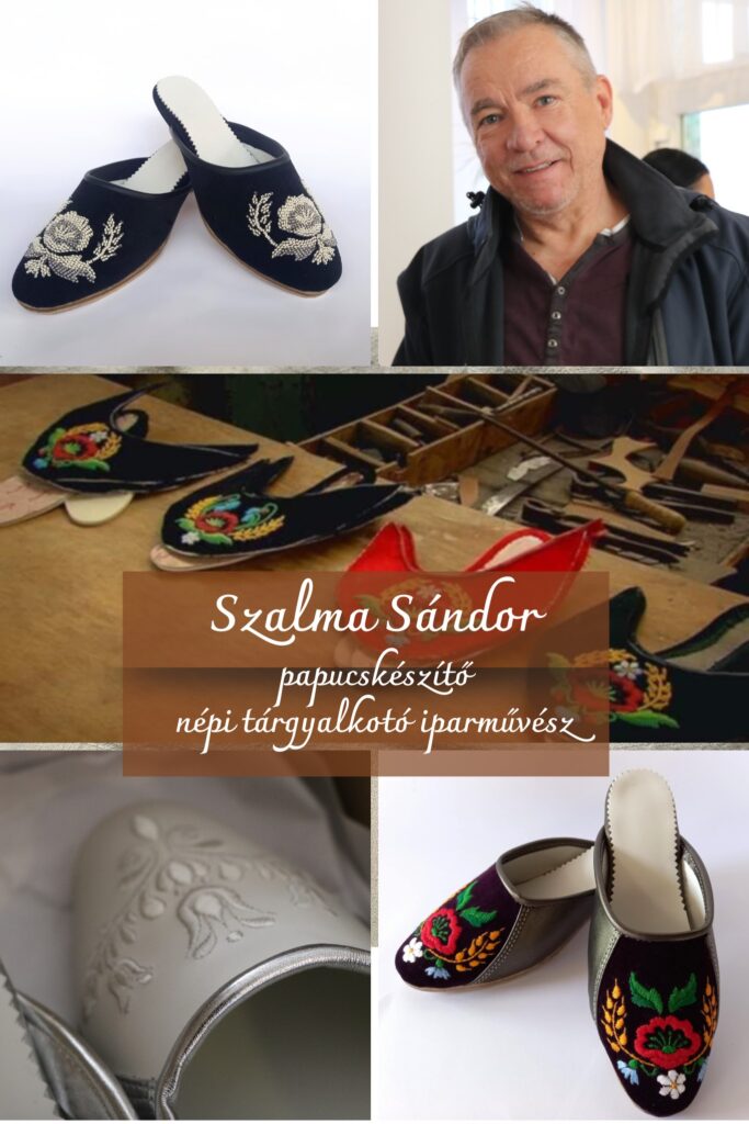 Szalma Sándor adai papucskészítő mester többféle női és férfi fapapucsot készít természetes anyagokból, egyedi díszítéssel.