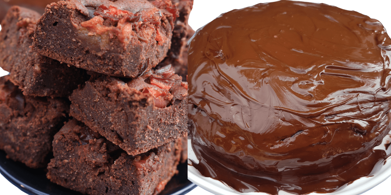 Nyolc tojást egy pici sóval habosra felverünk. Beletesszük a gőz felett megolvasztott 120 gramm vaj és 400 gramm étcsokoládé keverékét, valamint 200 gramm finomra darált mogyorót vagy mandulát. Elővigyázatosan összevegyítjük, majd egy 24 centiméter átmérőjű kerek vagy mintegy 40 × 30 centiméteres, sütőpapírral kibélelt formába öntjük, megszórjuk kis kockákra vágott gyümölccsel (szilva, alma, cseresznye, meggy vagy körte), és 175 fokon 30 percig sütőben sütjük. Ebből a finomságból bármennyit ehet minden gyerek. Tehát nem az evés élvezetét raboljuk el, hanem csak az élvezetének tárgyát módosítjuk.