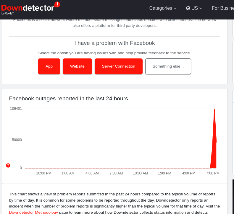 Szerdán 19 óra körül „megadta magát” a Facebook, de nem működik az Instagram és a Threads sem.