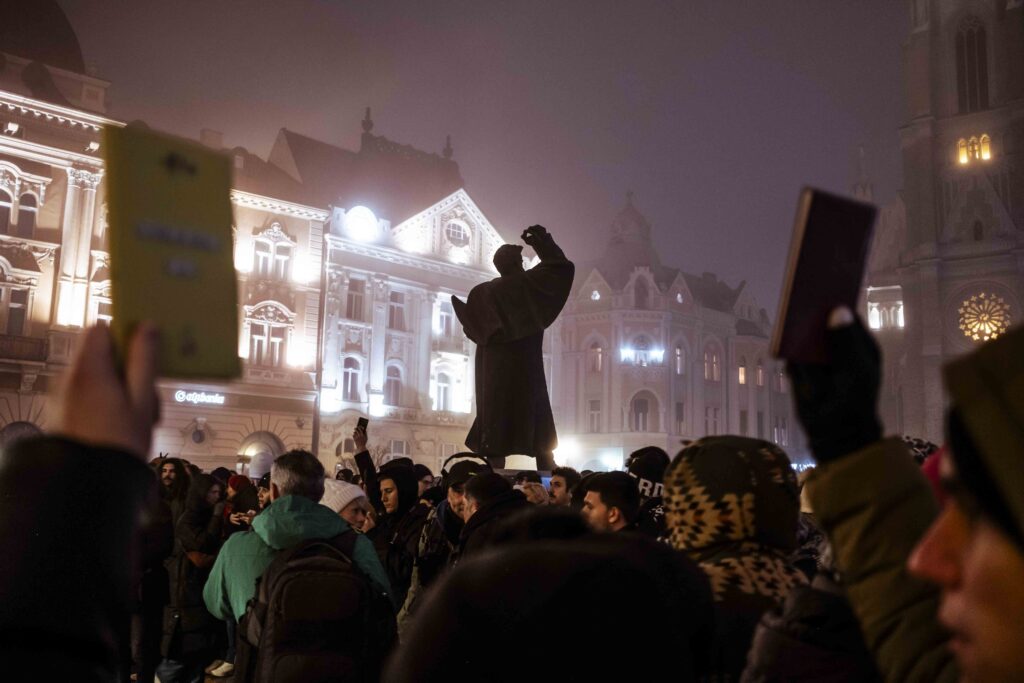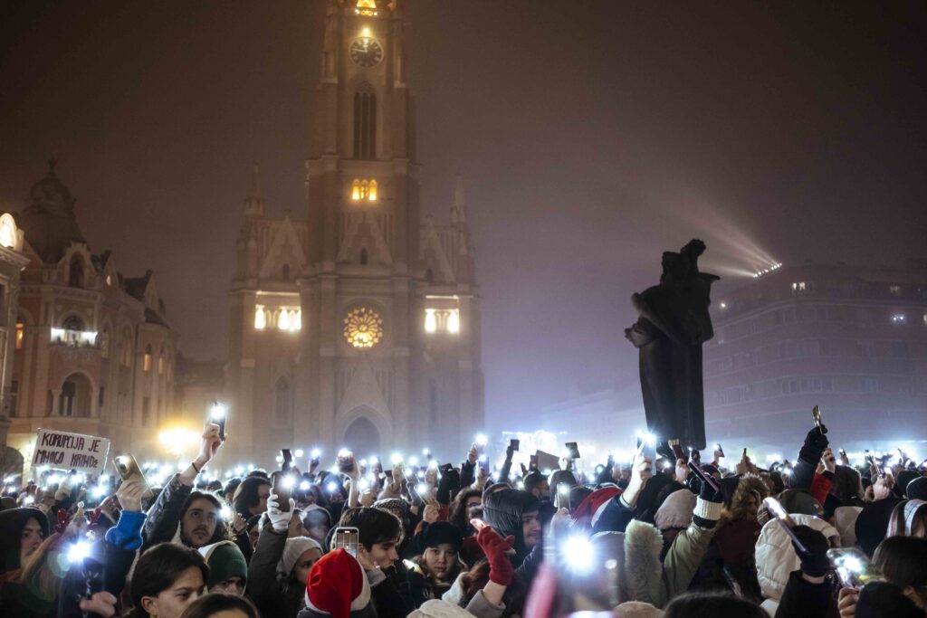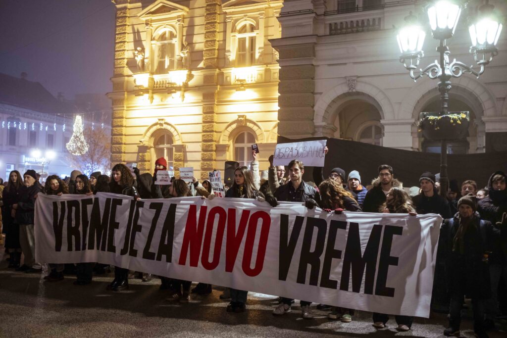 Zajongással és elcsendesedéssel búcsúztatták az óévet az egyetemisták és a polgárok Újvidéken (Fotók és videó: Mina Delić)