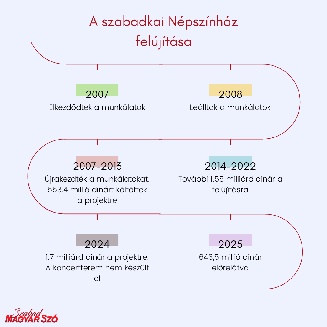 Április 22-ére ígérte Igor Mirović tartományi kormányfő a Szabadkai Népszínház épülete felújításának befejezését és Szabadka polgármestere, Stevan Bakić szerint csak a használati engedélyek megszerzése volt hátra valamint az ünnepélyes átadó, amivel a tervek szerint megvárták volna Aleksandar Vučić szerb államfőt is.