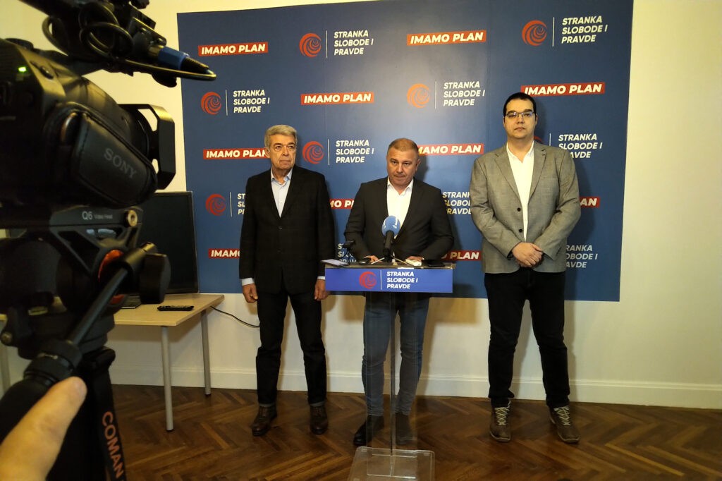 Csiszár László, Sebők Róbert és Ivan Rakić, a Szabadság és Igazságosság Párt szabadkai sajtótájékoztatóján (Fotó: Tóth Imre)