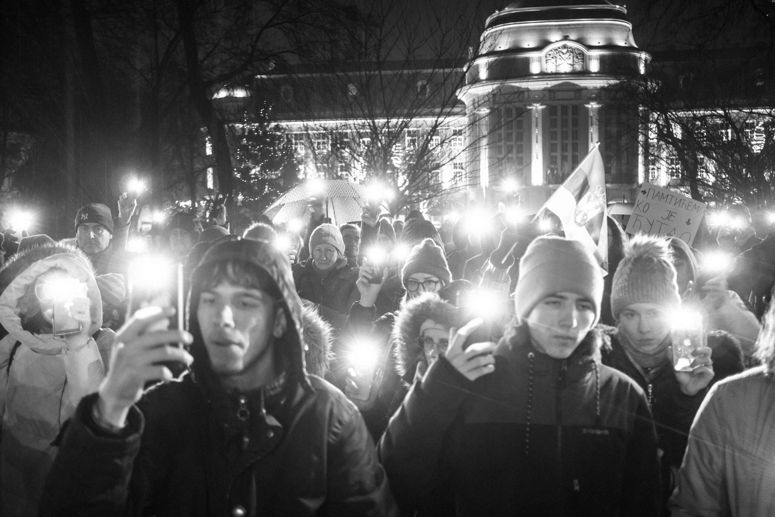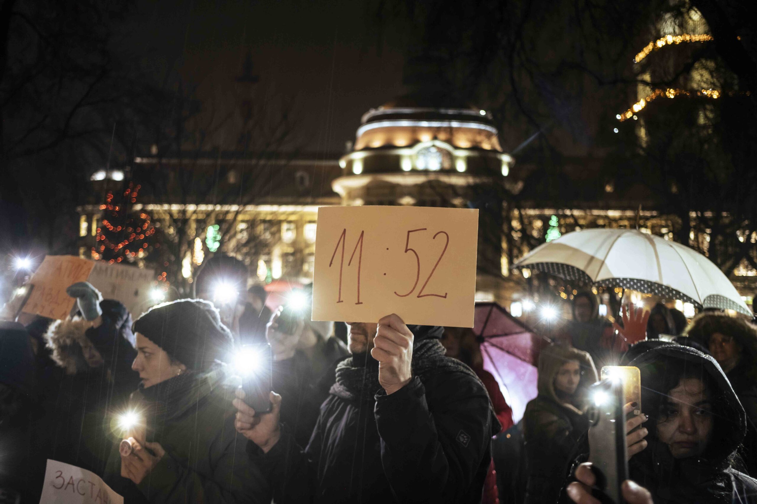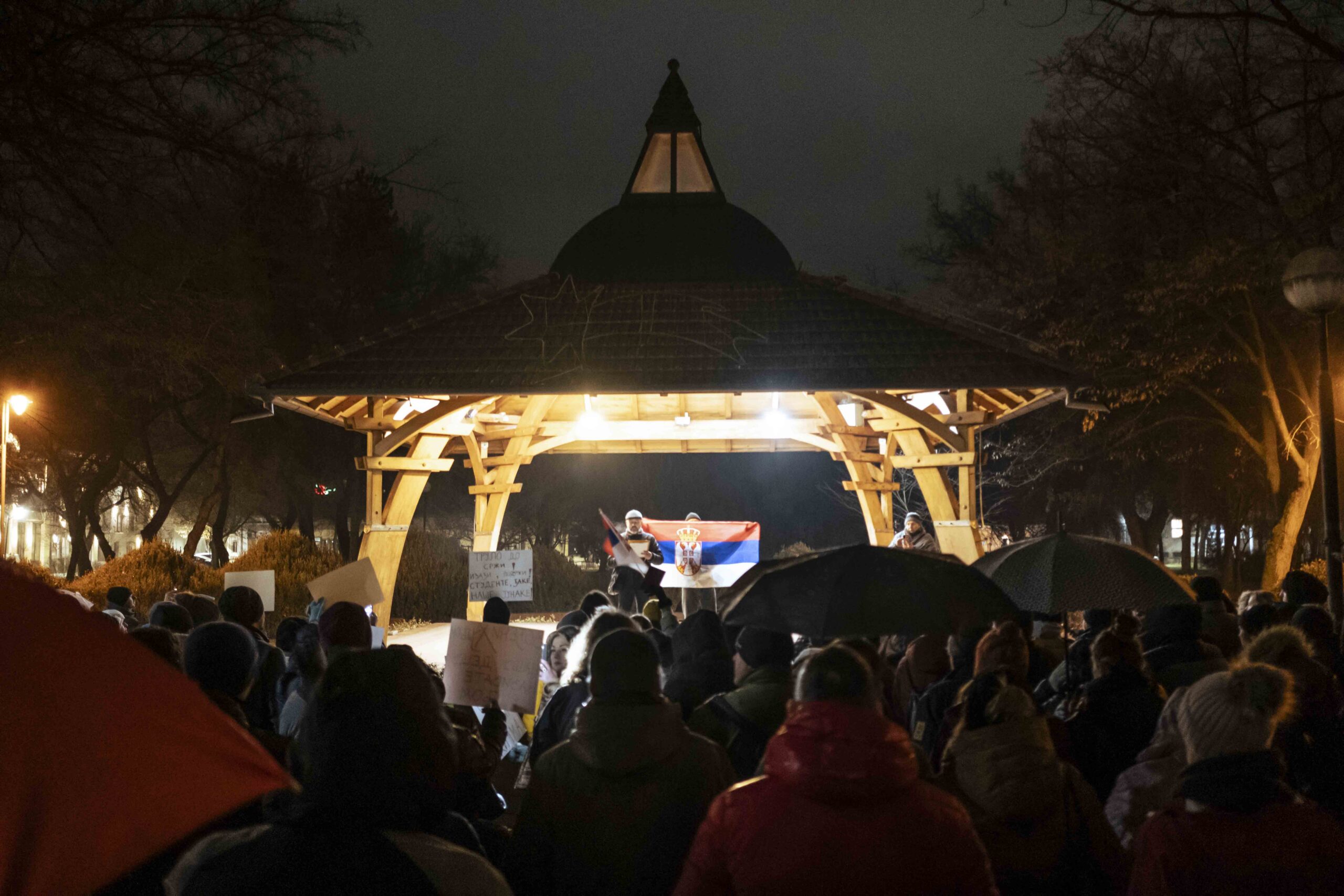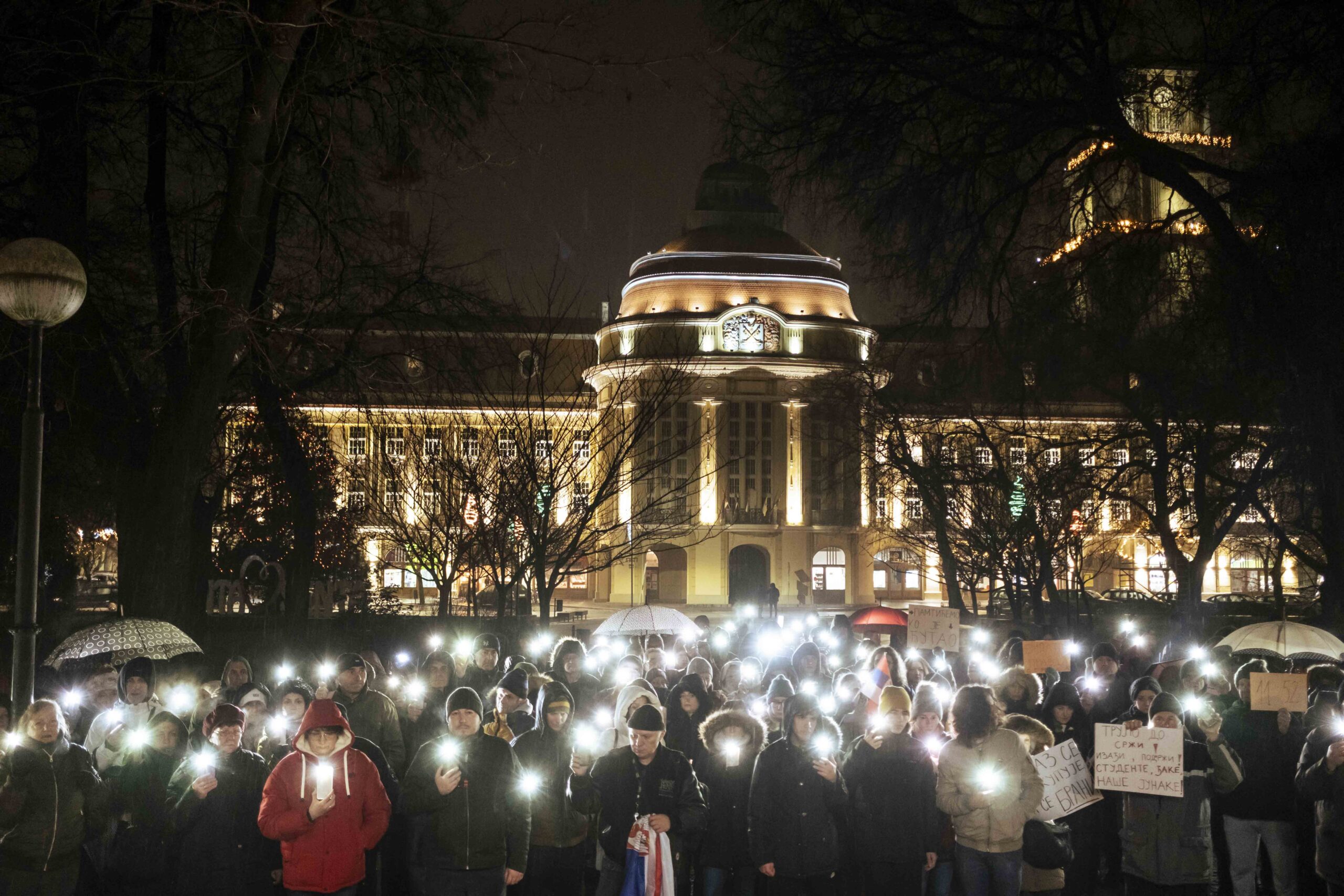 – Kicsit mi is hibásak vagyunk, mert nem reagáltunk először elég hangosan az első botrányokra és visszaélésekre. De most már nem fogunk hallgatni, elég volt! Az egyetemistáknak köszönhetően eljutottunk addig a vízválasztó pillanatig, addig amikor már ennek a cirkuszi tábornak a csavarjai kilazultak. A diákok azt üzenték, most már nem bírják egyedül, kell nekik a támogatást, mi pedig erről biztosítjuk őket. Fontos, hogy minél több intézmény csatlakozzon, és első helyen az oktatás legyen. Mi ebben a pillanatban nem a saját fizetéseinkét, hanem egy igazságos országért küzdünk. Kérem, hogy támogassák a tanárokat és a tanítókat, és azt üzenjük azoknak, akik fenyegetnek bennünket, hogy nem félünk! – mondta Zlatko Rahimić, a Szerbiai Tanügyi Dolgozók Független Szakszervezete végrehajtó bizottságának tagja, akinek a felszólalása után tizenöt perc csend következett az újvidéki áldozatok emlékére, amely során a polgárok a mobiltelefonjaikkal világítottak.