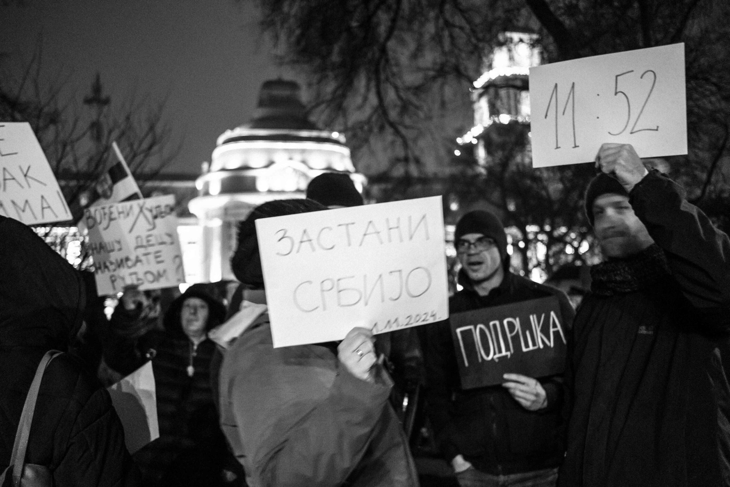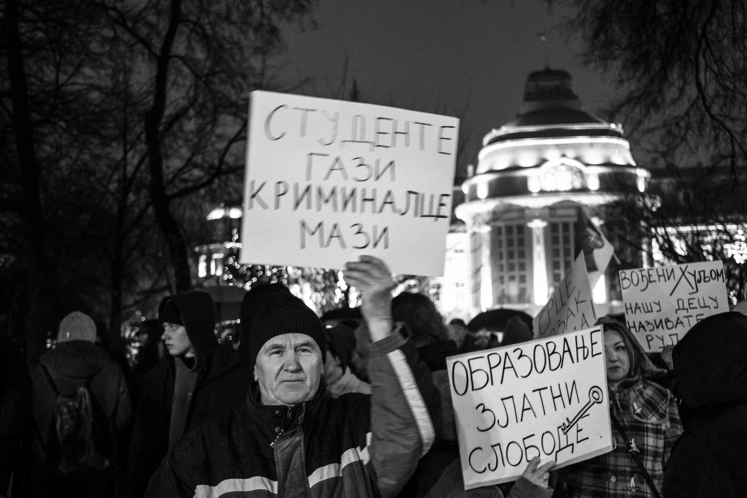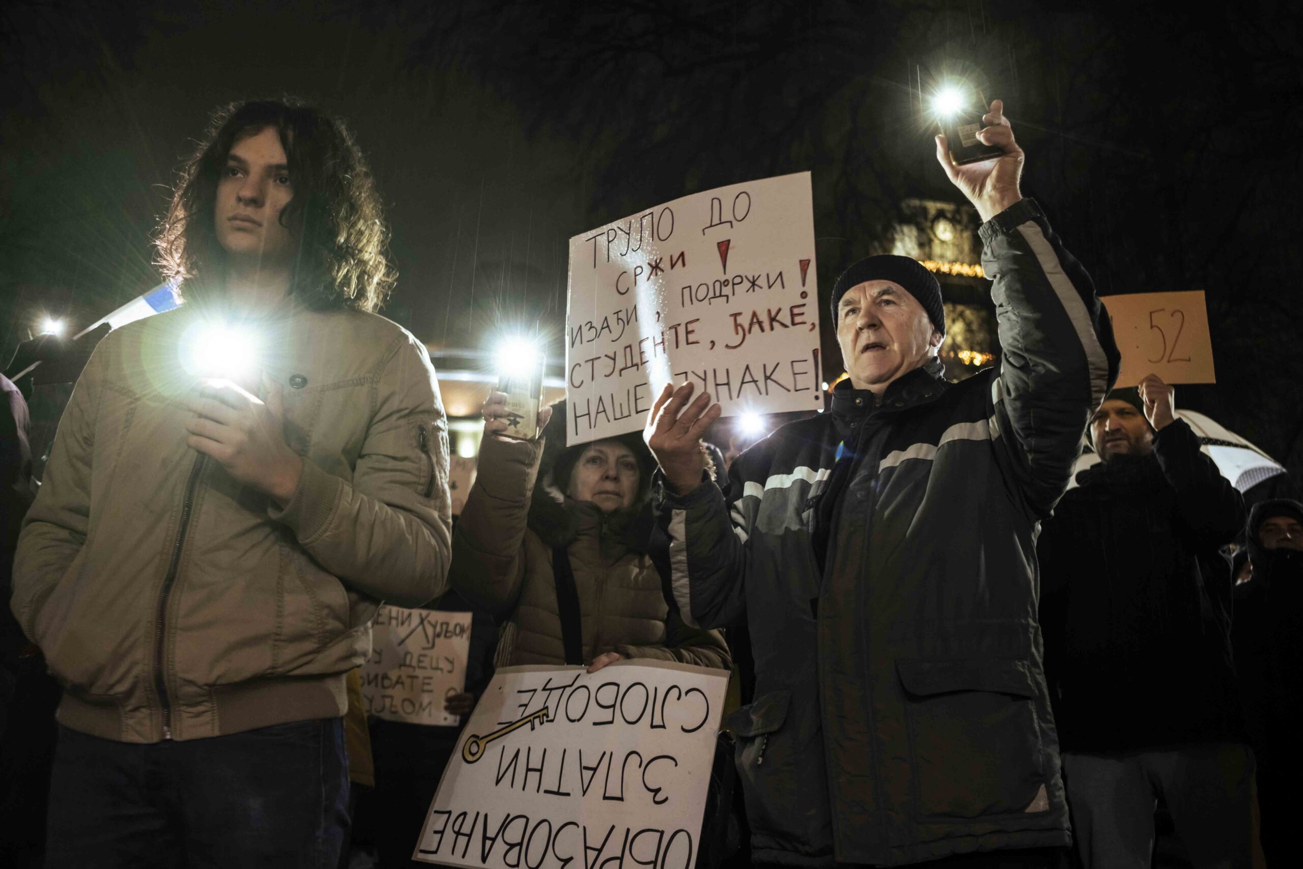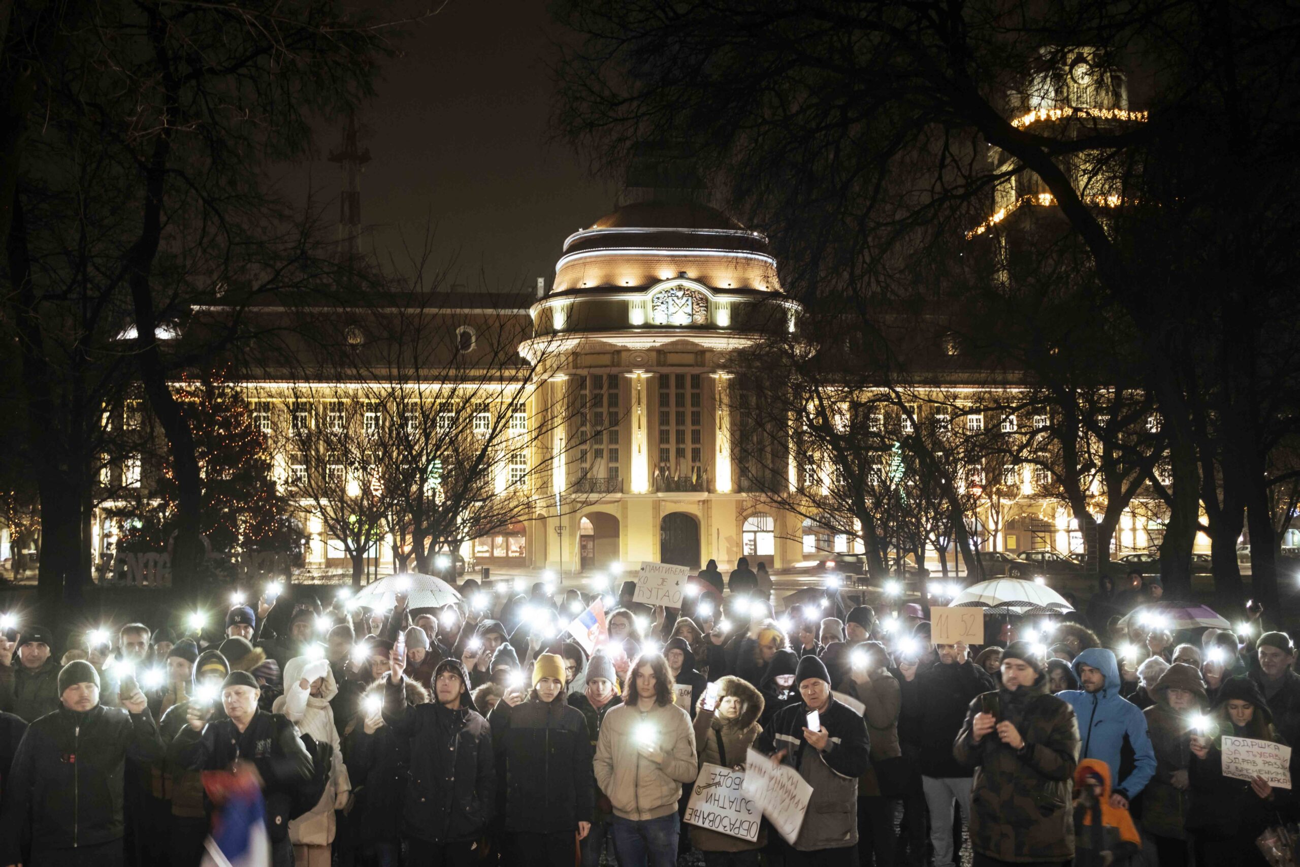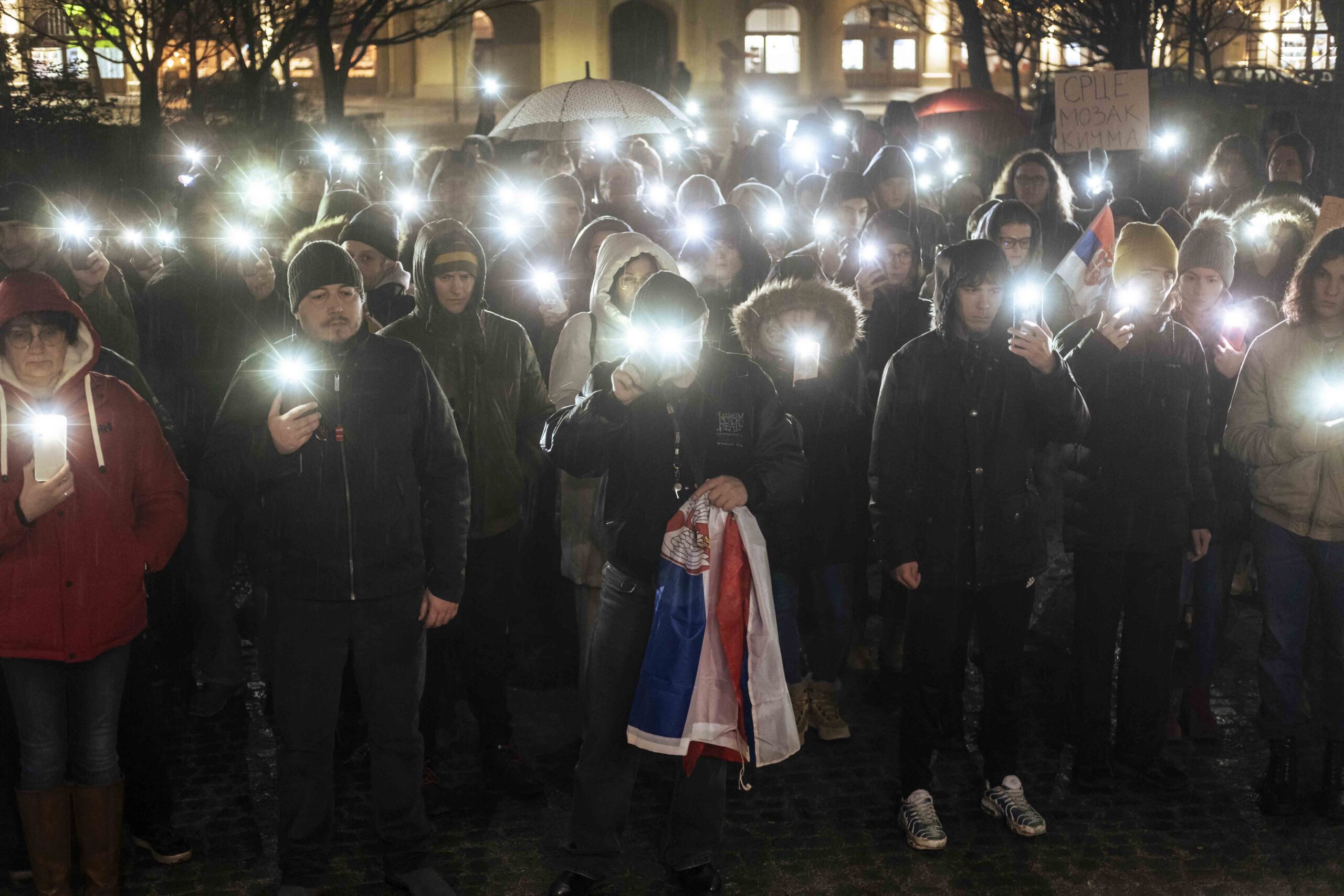 – Kicsit mi is hibásak vagyunk, mert nem reagáltunk először elég hangosan az első botrányokra és visszaélésekre. De most már nem fogunk hallgatni, elég volt! Az egyetemistáknak köszönhetően eljutottunk addig a vízválasztó pillanatig, addig amikor már ennek a cirkuszi tábornak a csavarjai kilazultak. A diákok azt üzenték, most már nem bírják egyedül, kell nekik a támogatást, mi pedig erről biztosítjuk őket. Fontos, hogy minél több intézmény csatlakozzon, és első helyen az oktatás legyen. Mi ebben a pillanatban nem a saját fizetéseinkét, hanem egy igazságos országért küzdünk. Kérem, hogy támogassák a tanárokat és a tanítókat, és azt üzenjük azoknak, akik fenyegetnek bennünket, hogy nem félünk! – mondta Zlatko Rahimić, a Szerbiai Tanügyi Dolgozók Független Szakszervezete végrehajtó bizottságának tagja, akinek a felszólalása után tizenöt perc csend következett az újvidéki áldozatok emlékére, amely során a polgárok a mobiltelefonjaikkal világítottak.