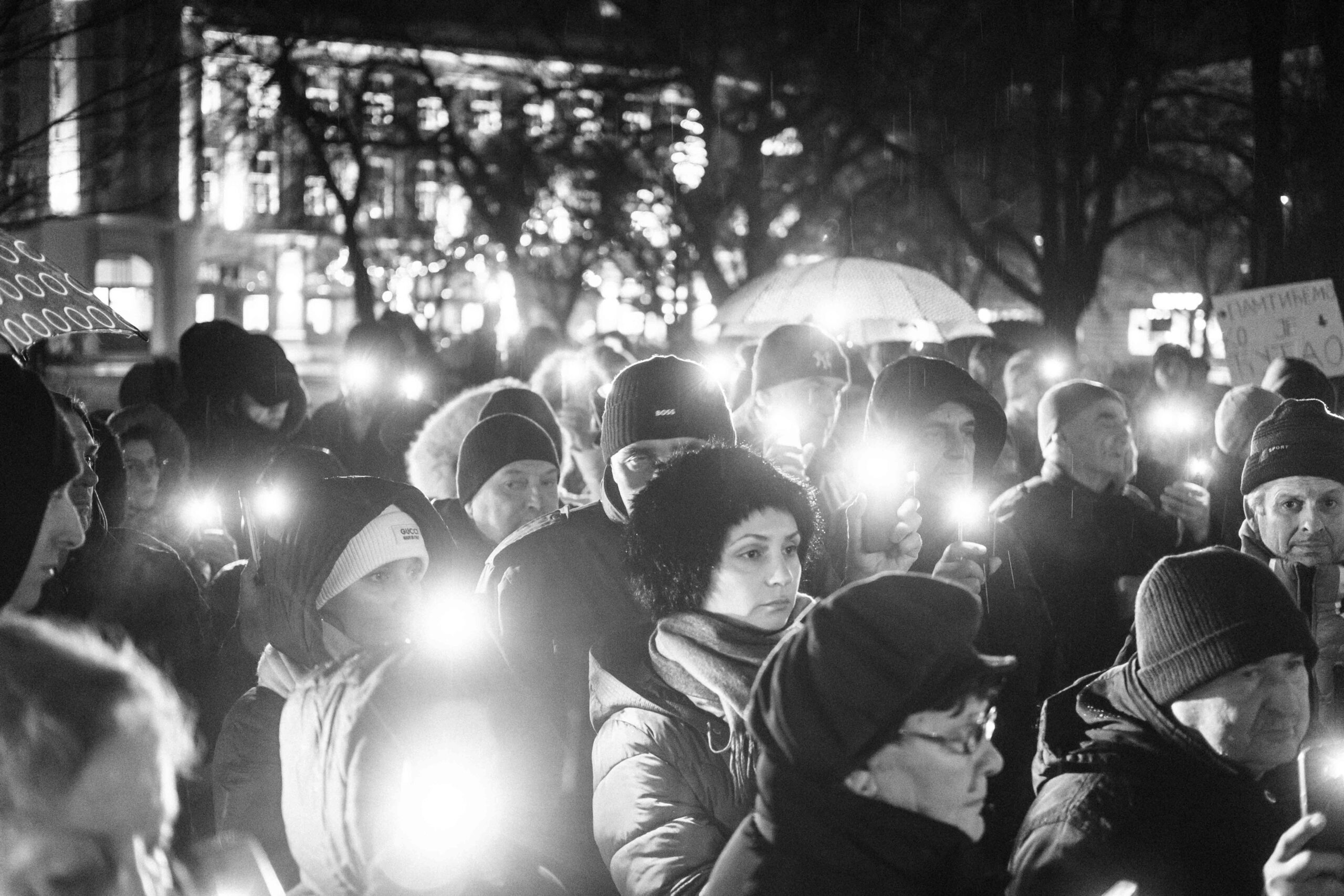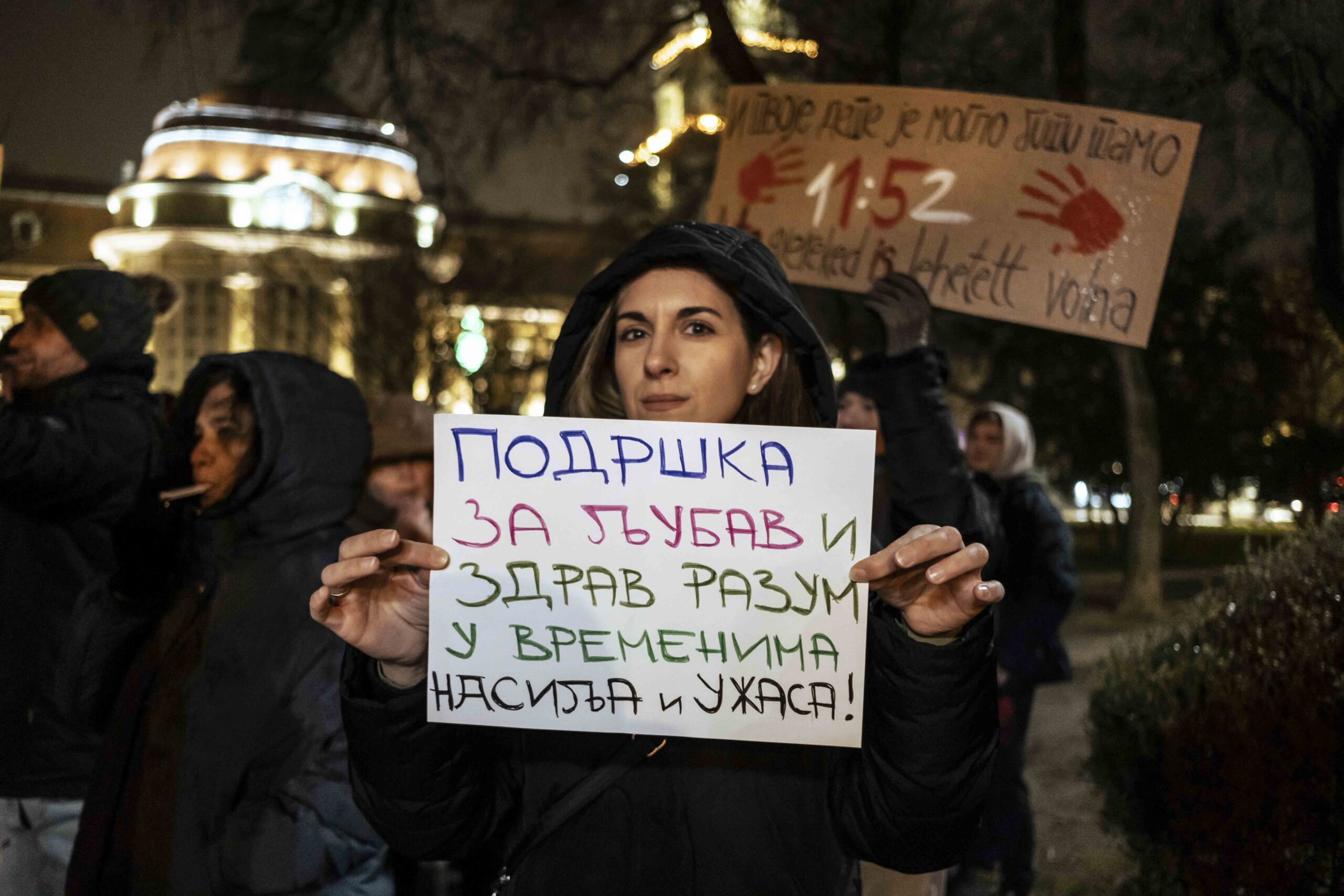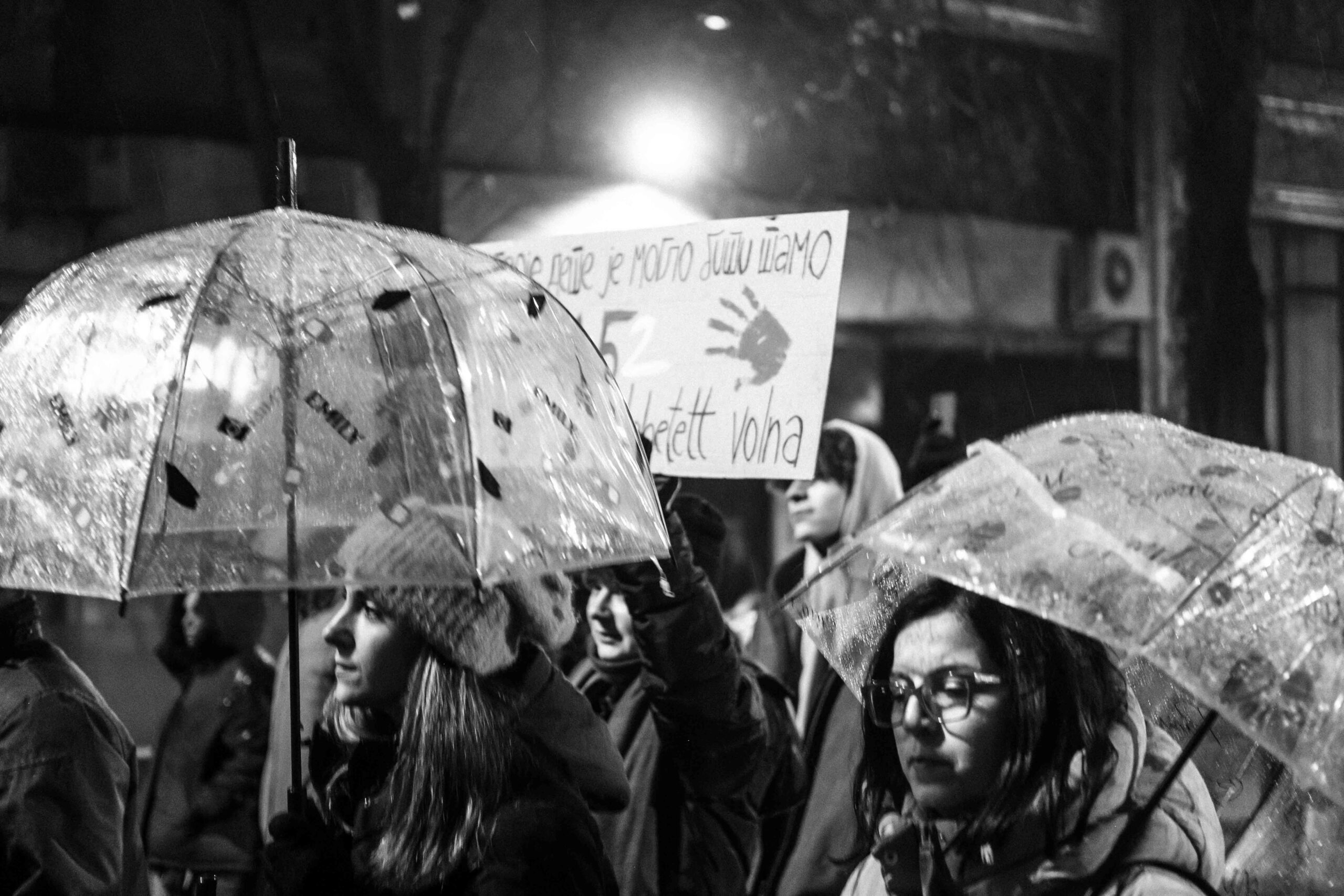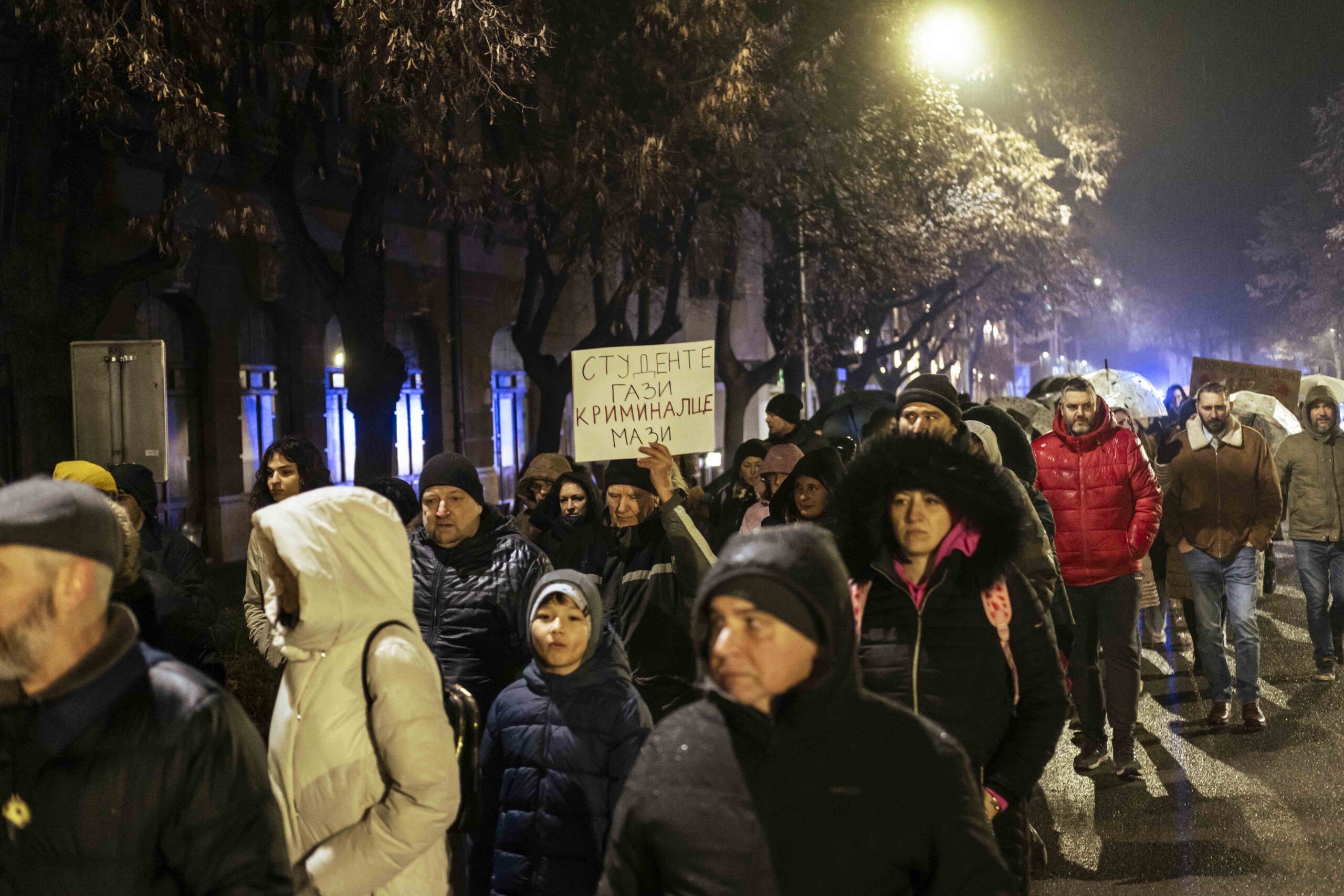 – Kicsit mi is hibásak vagyunk, mert nem reagáltunk először elég hangosan az első botrányokra és visszaélésekre. De most már nem fogunk hallgatni, elég volt! Az egyetemistáknak köszönhetően eljutottunk addig a vízválasztó pillanatig, addig amikor már ennek a cirkuszi tábornak a csavarjai kilazultak. A diákok azt üzenték, most már nem bírják egyedül, kell nekik a támogatást, mi pedig erről biztosítjuk őket. Fontos, hogy minél több intézmény csatlakozzon, és első helyen az oktatás legyen. Mi ebben a pillanatban nem a saját fizetéseinkét, hanem egy igazságos országért küzdünk. Kérem, hogy támogassák a tanárokat és a tanítókat, és azt üzenjük azoknak, akik fenyegetnek bennünket, hogy nem félünk! – mondta Zlatko Rahimić, a Szerbiai Tanügyi Dolgozók Független Szakszervezete végrehajtó bizottságának tagja, akinek a felszólalása után tizenöt perc csend következett az újvidéki áldozatok emlékére, amely során a polgárok a mobiltelefonjaikkal világítottak.