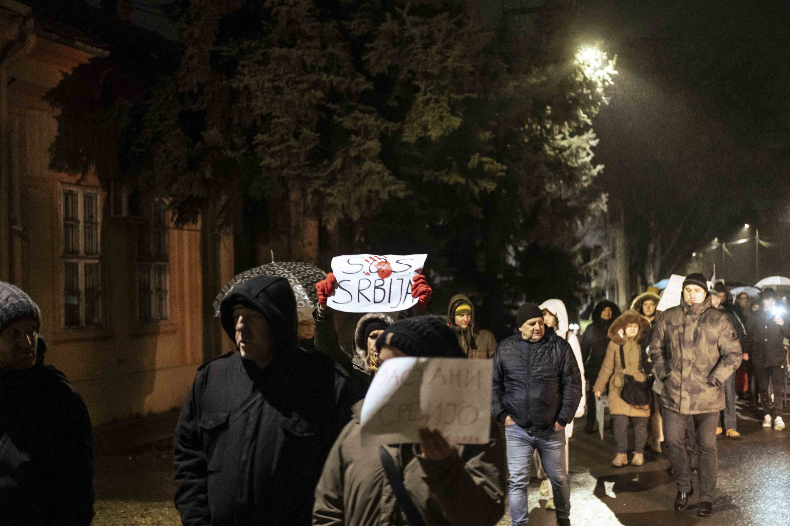 Mintegy száztíz személy részvételével, havas esővel kísérve zajlott le a zentai parkban a pavilonnál megrendezett tiltakozás, amelyen Zlatko Rahimić tanár szólt az egybegyűltekhez, a negyedórás csendet követően pedig egy sétát is tettek az egyetemistákat támogatásukról biztosító polgárok.