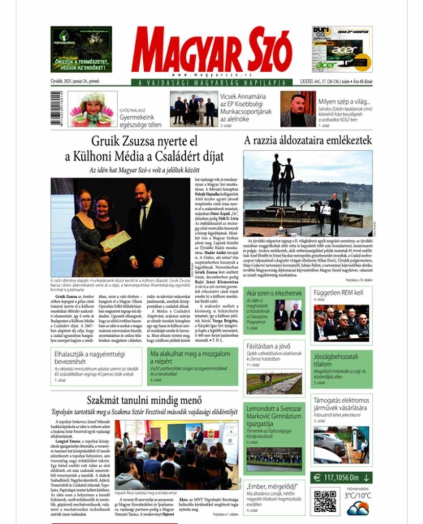 A Vajdasági Magyarok Demokratikus Közössége megdöbbenéssel értesült arról, hogy a mai napra, 2025. január 24-re meghirdetett országos általános sztrájkról és a békés gyülekezésekről az egyetlen, közpénzből finanszírozott magyar nyelvű napilapunk, a Magyar Szó, a címoldalán semmilyen formában nem számolt be, írják pénteki közleményükben.