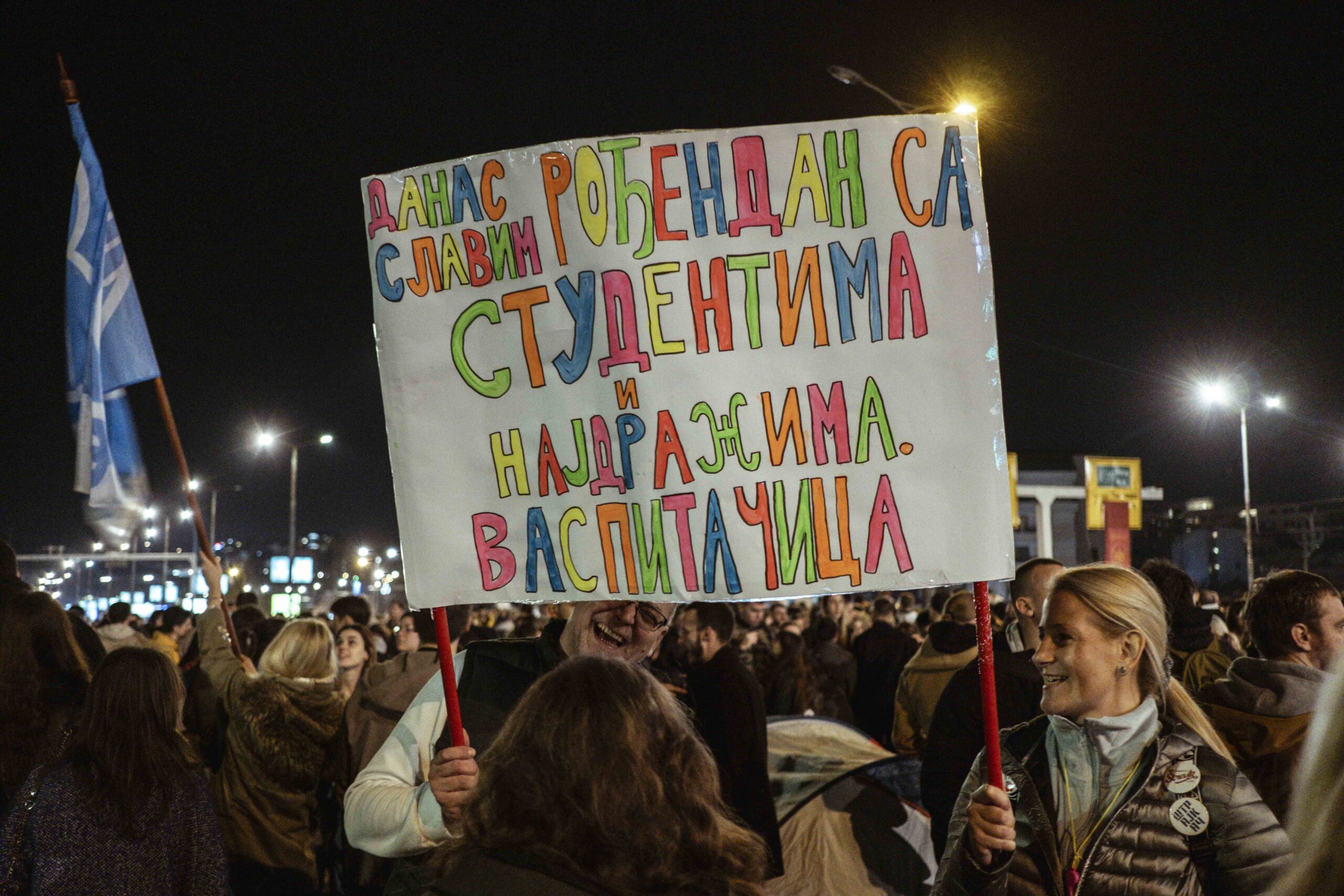 „Adjátok meg magatokat! Elfogulatlan bíróság elé állhattok. Jobb az, mint ha menekültök” – üzente hétfőn este Jovo Bakić, a belgrádi Bölcsészettudományi Kar professzora, és hangsúlyozta, továbbra is fontos az összefogás. Felszólította a munkavállalókat, hogy csatlakozzanak a harchoz és hirdessenek általános sztrájkot.