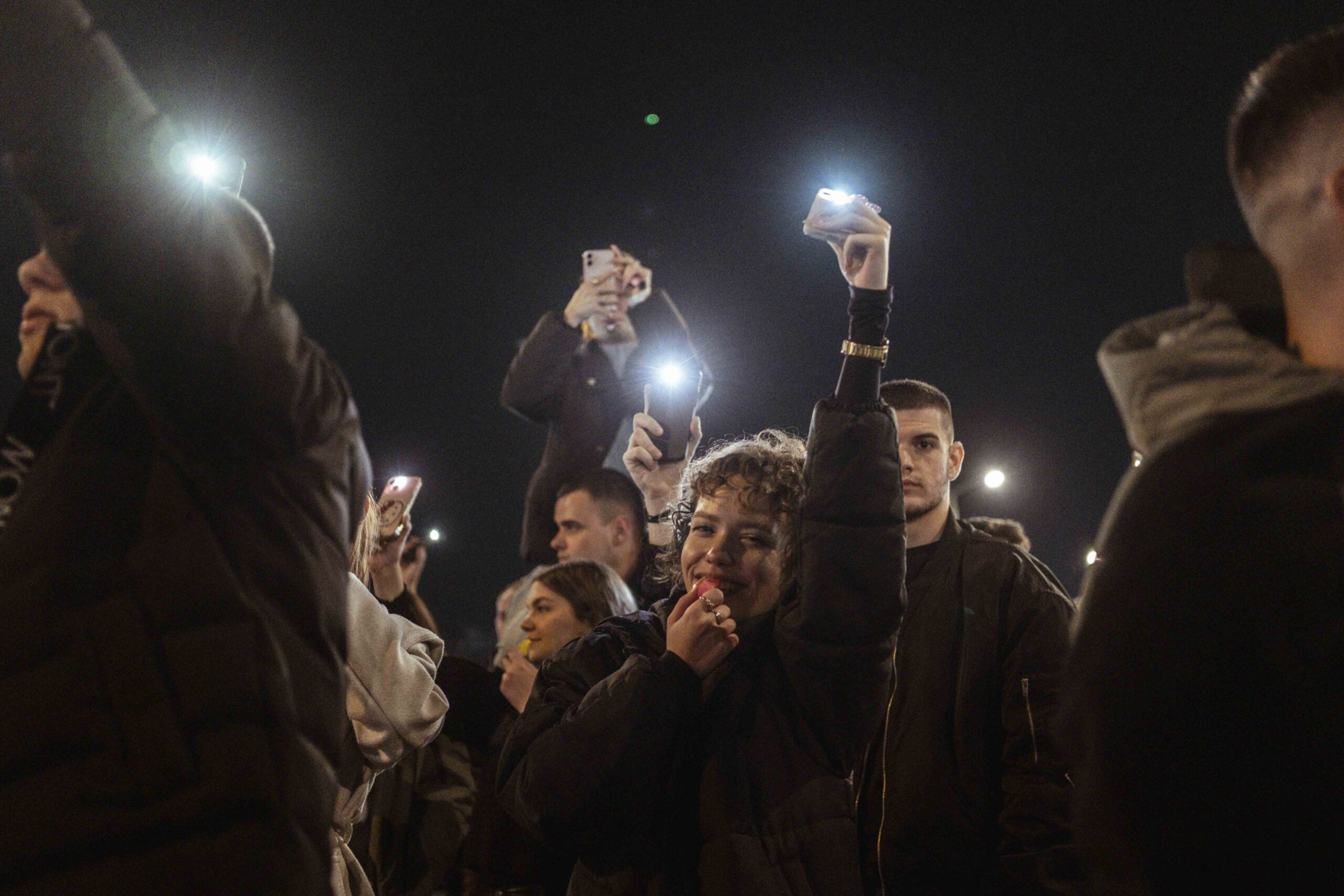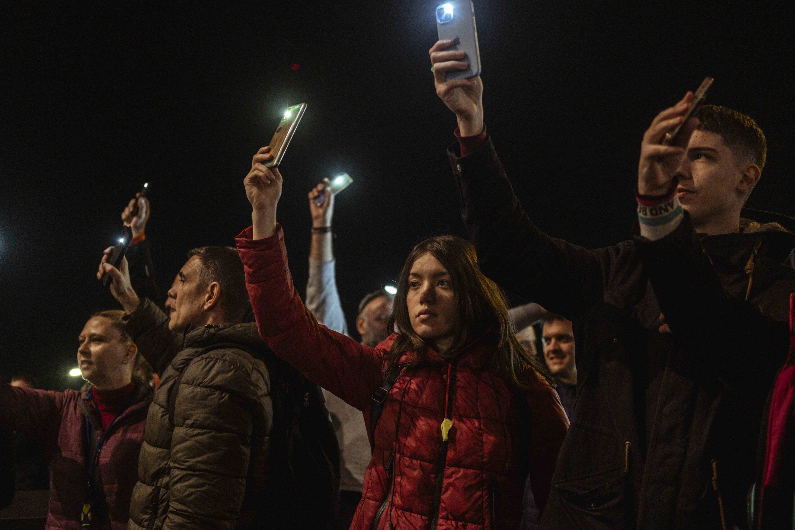 Este nyolc órakor mindenki felkapcsolta a mobiltelefonjának a lámpáját, és fénnyel, valamint zajjal emlékeztettek, hogy követeléseik még mindig nem teljesültek.