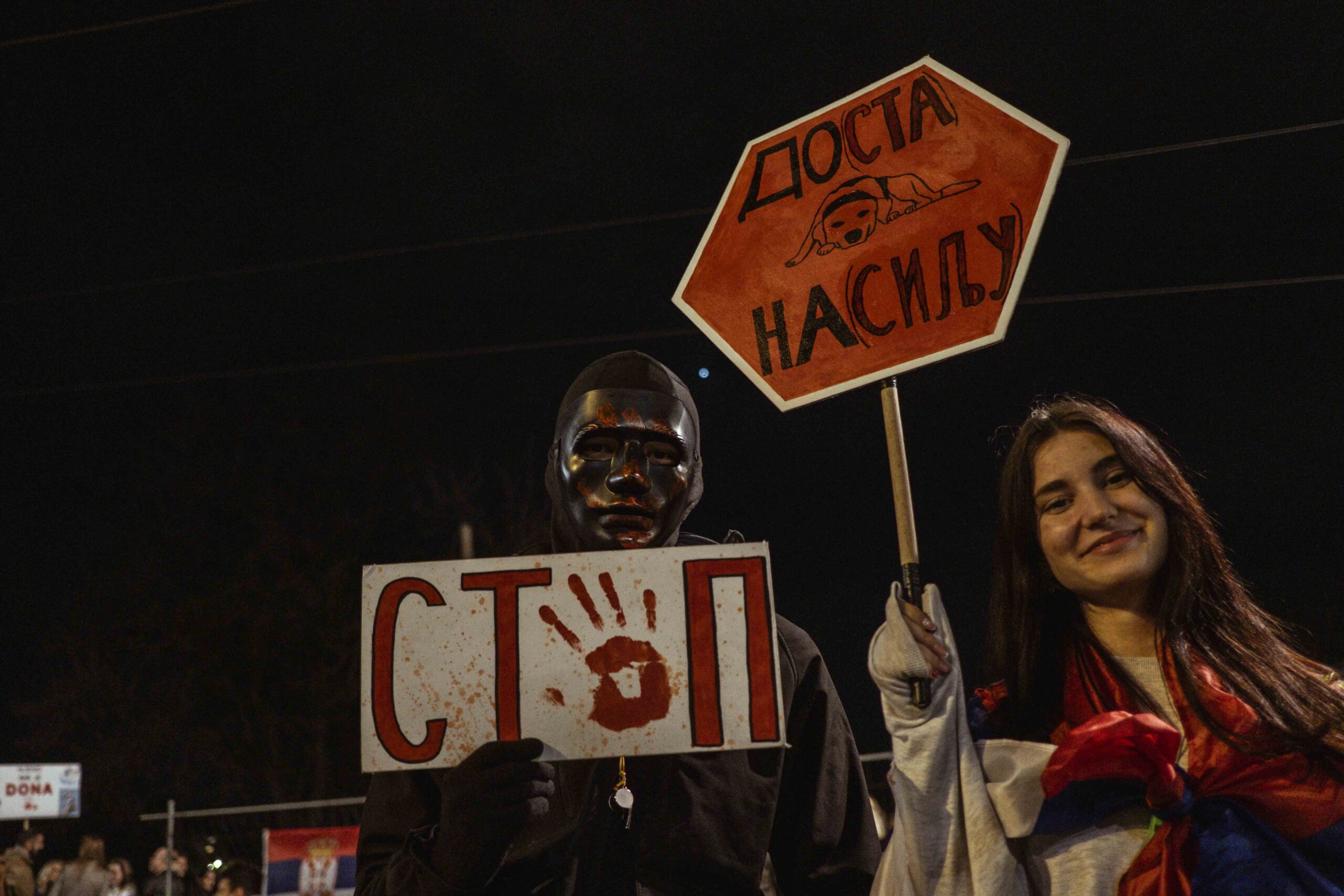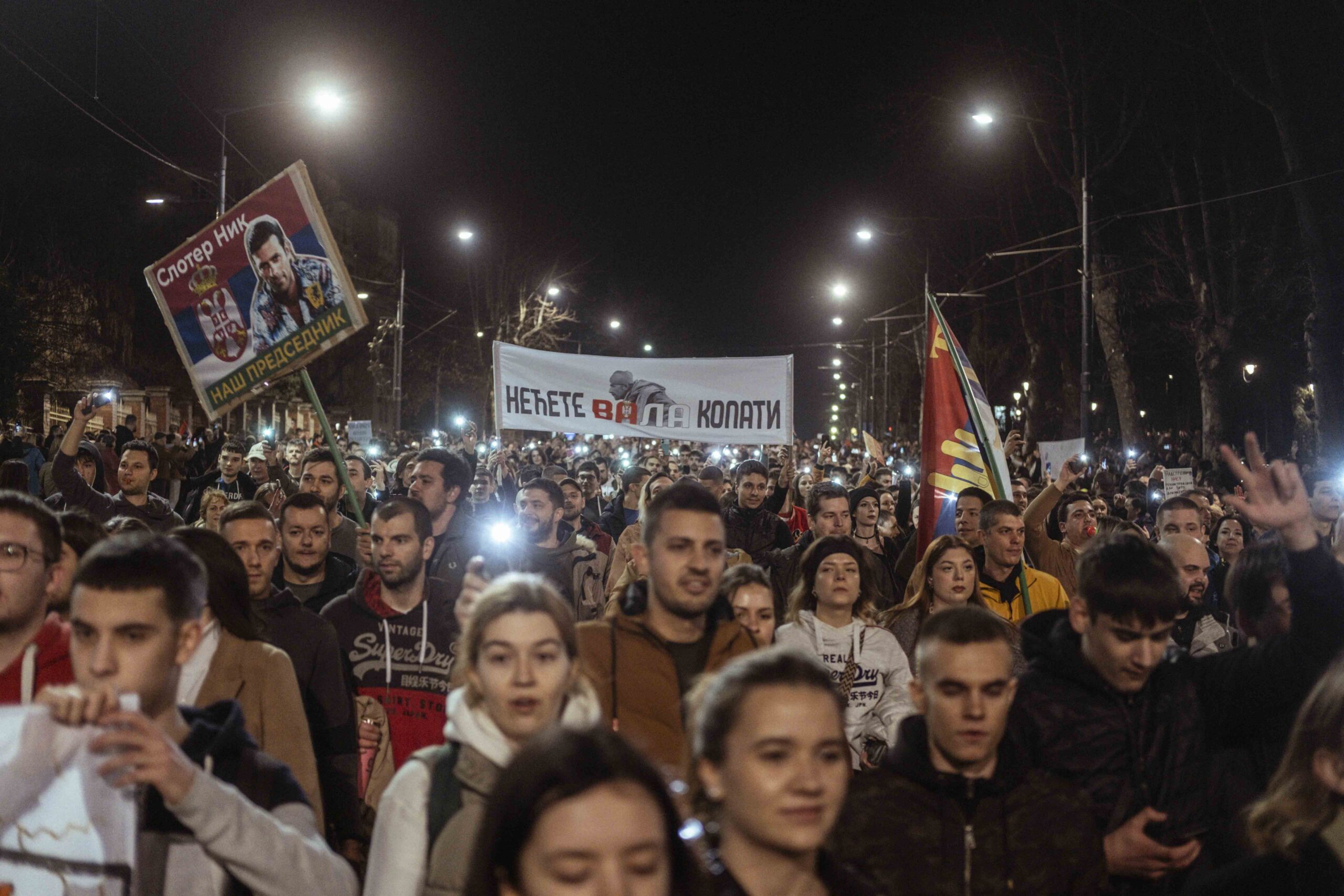 „Adjátok meg magatokat! Elfogulatlan bíróság elé állhattok. Jobb az, mint ha menekültök” – üzente hétfőn este Jovo Bakić, a belgrádi Bölcsészettudományi Kar professzora, és hangsúlyozta, továbbra is fontos az összefogás. Felszólította a munkavállalókat, hogy csatlakozzanak a harchoz és hirdessenek általános sztrájkot.