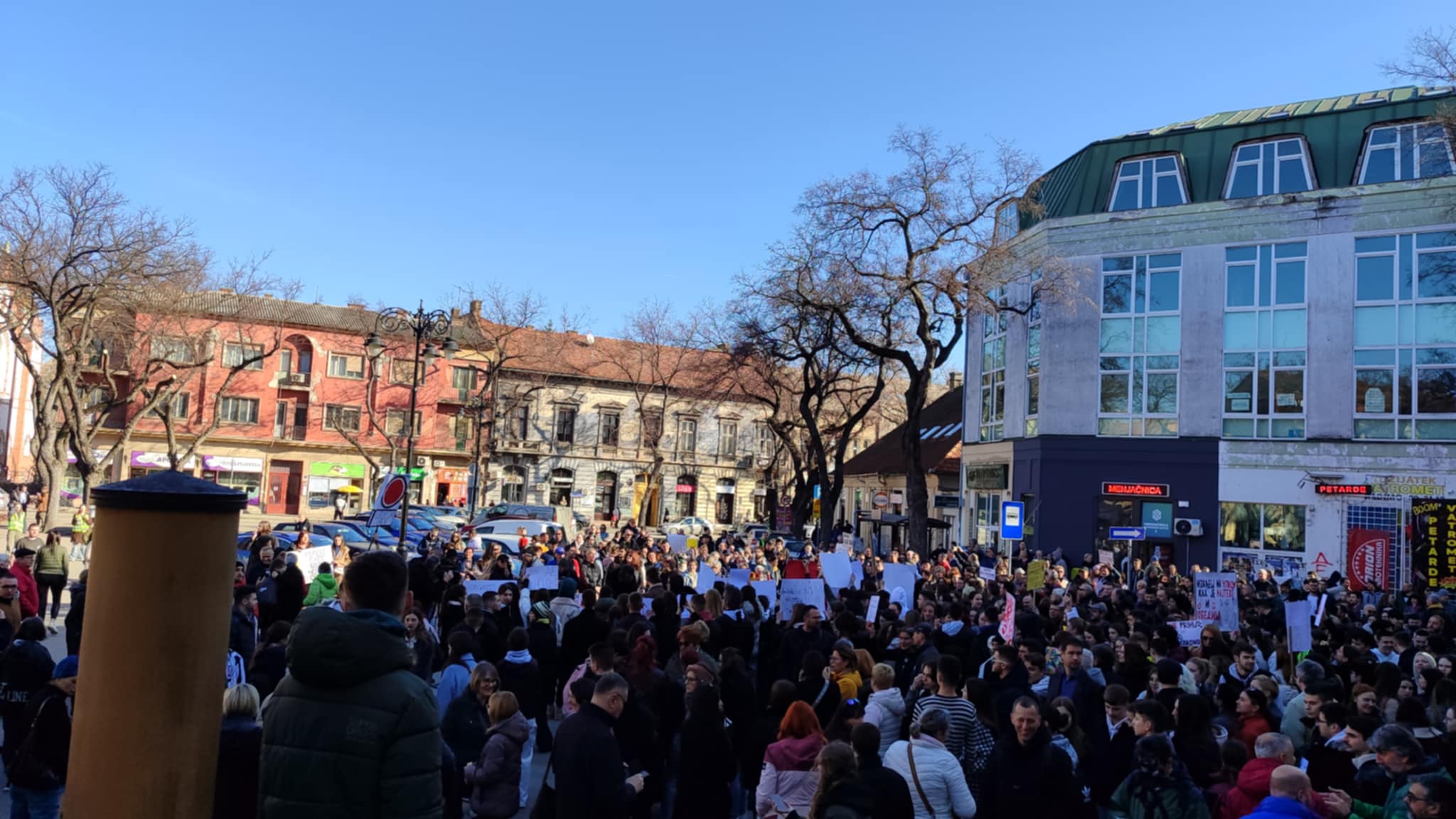 Pénteken ismét tüntetés volt Szabadkán, amely 15 perc csenddel kezdődött és 15 perc zajjal ért véget. A diákok és a polgárok a szabadkai Svetozar Marković Gimnáziumnál gyülekeztek, itt zárták le a forgalmat a körforgalomban.