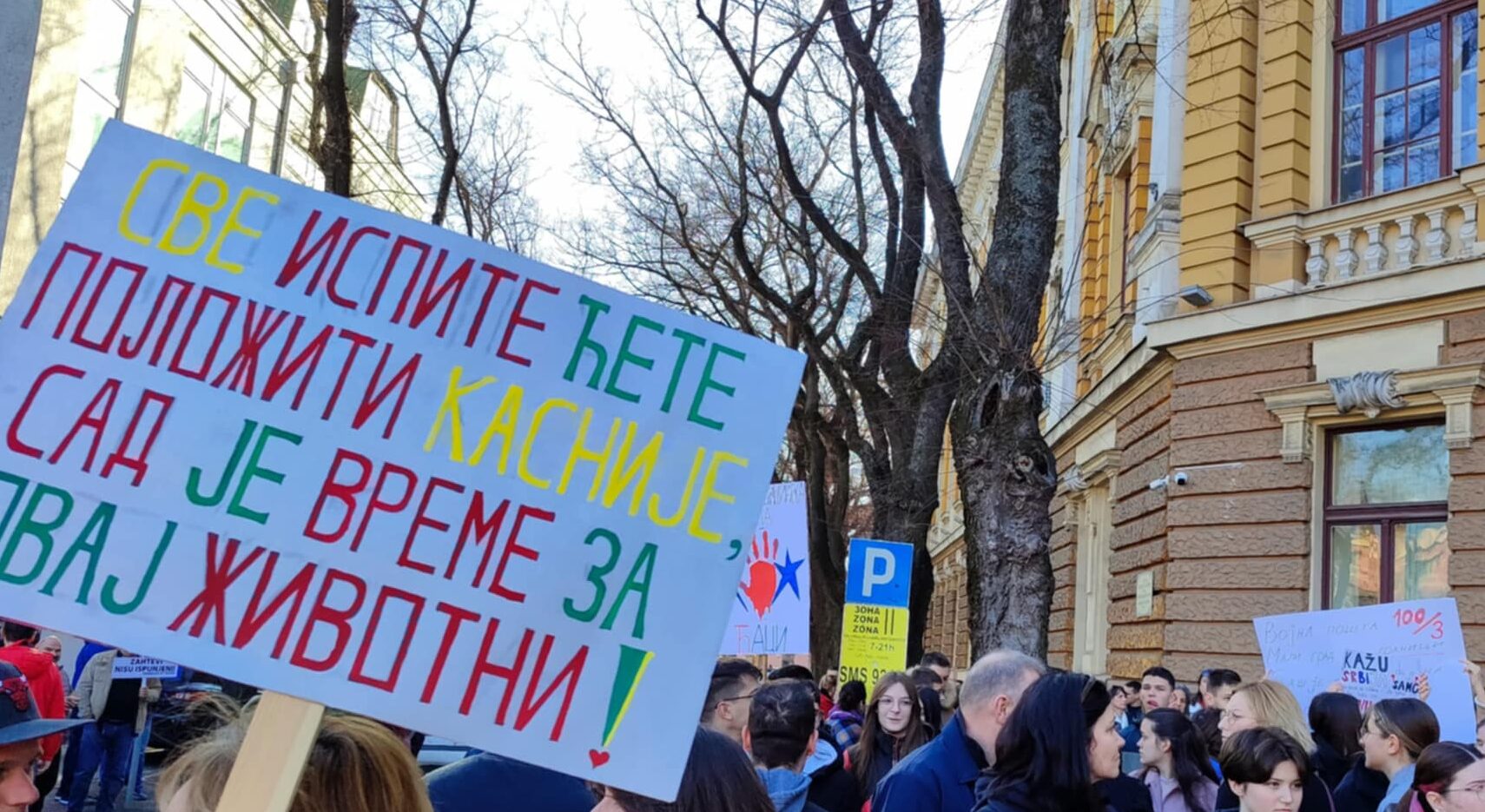 A szabadkai Petőfi Sándor utca végén található körforgalomban a közlekedést rendőrök irányították. A megmozduláson a Svetozar Marković Gimnázium tanárai és diákjai mellett részt vettek még az Egészségügyi Középiskola diákjai, a Közgazdasági Kar hallgatói és a Műszaki Szakfőiskola diákjai. Rengeteg polgár tartott a tüntető diákokkal.