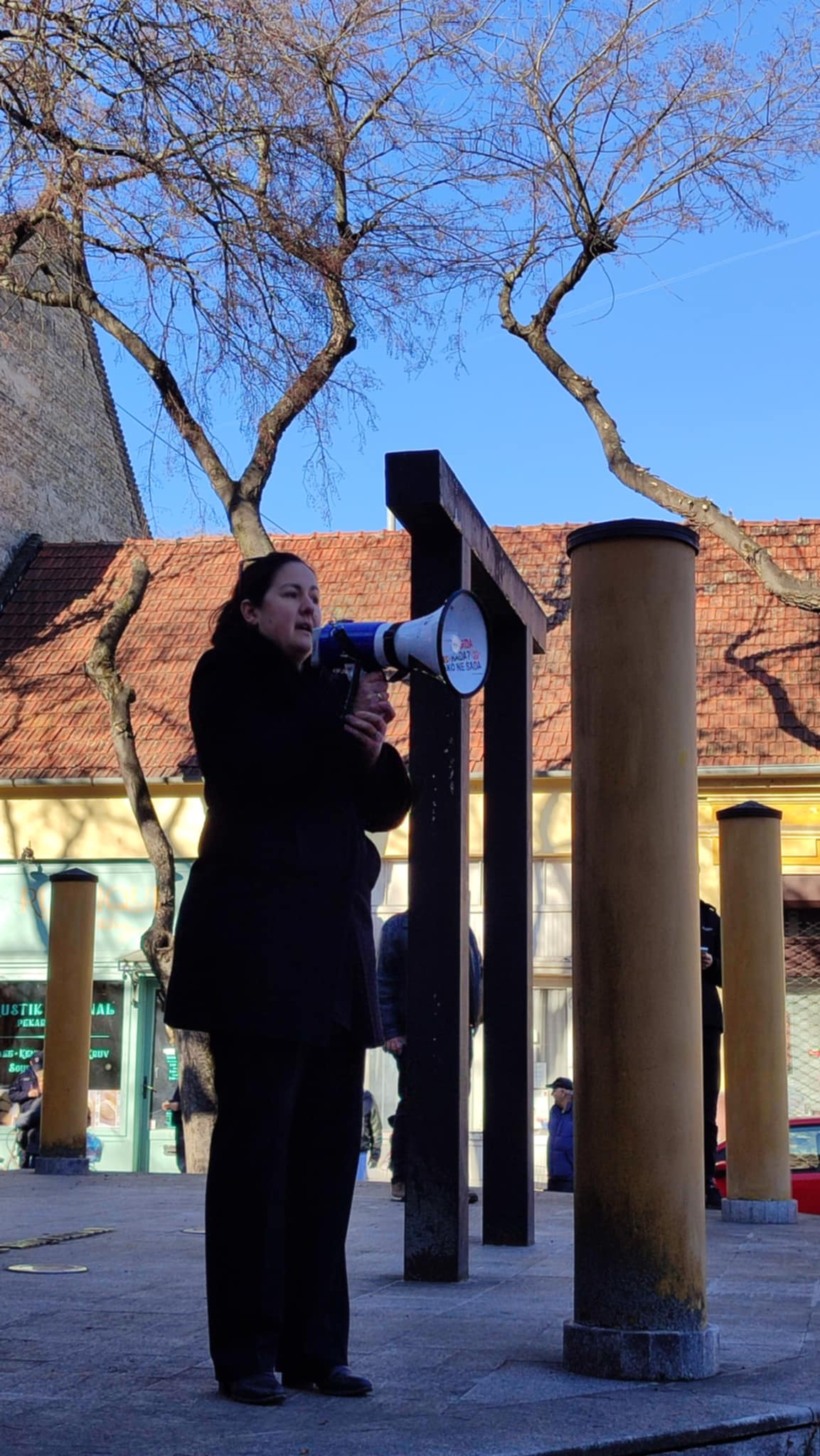 „A szabadkai Svetozar Marković Gimnázium volt az első, aki beszüntette a munkát, és kiállt a diákok mellett. A tanári pálya nem csak egy állás. Értéket képviselnek a tanárok, és ezért nem tehetik azt, hogy nem állnak ki a mostani és a volt diákok mellett, és bárki mellett, aki nem ért egyet a mostani rendszerrel”– mondta. A hallgatókról is szólt, akik Újvidékre tartanak gyalog, és a szabad ég alatt töltötték az éjszakát.