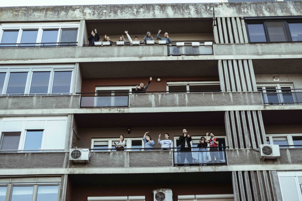 Sokan a lakásaik ablakából vagy az erkélyről integetnek és támogatják a tüntetőket.
