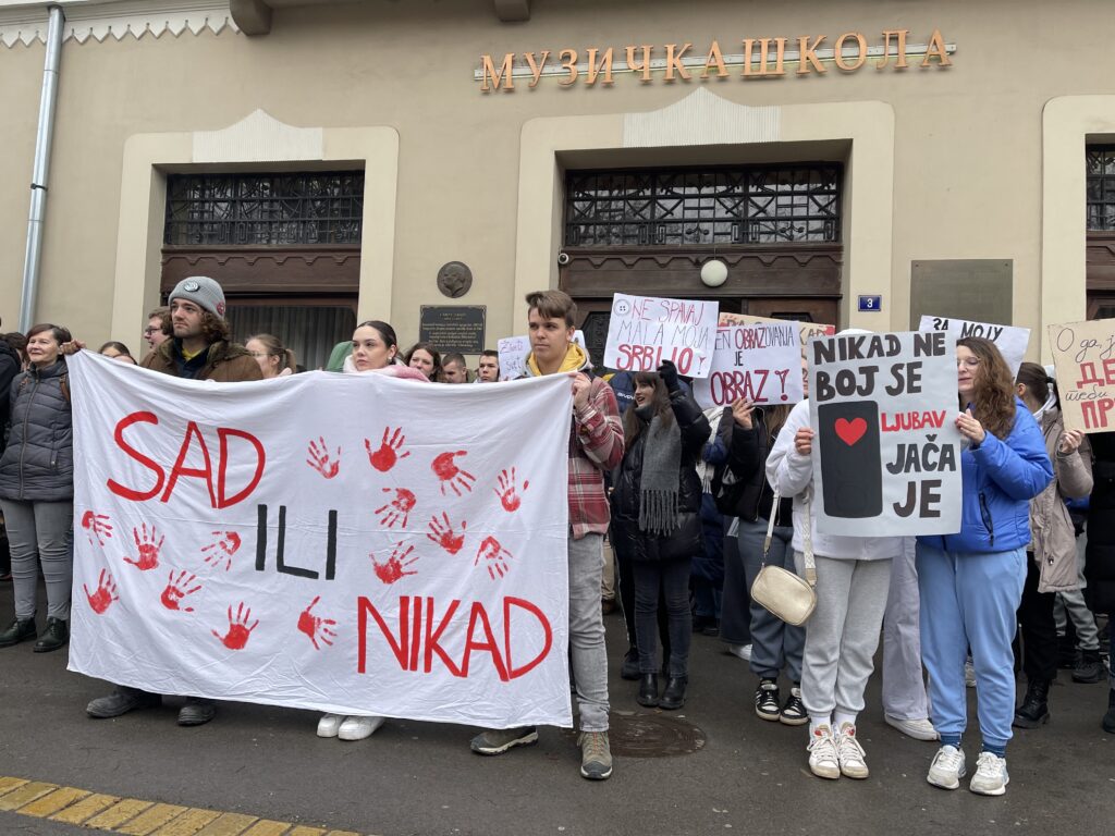 A csendet követően a Szabadkai Zeneiskola középiskolás diákja felolvasta a diákok közleményét, miszerint az intézmény középiskolás diákjainak plénumán az oktatás blokádjáról döntött a többség – a 73 tanulóból 55 volt jelen a plénumon, 35 szavazott a blokád mellett.