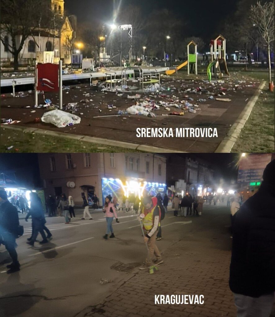 Két nagy esemény is volt szombaton Szerbiában. Kragujevacon az egyetemi hallgatók és a követeléseiket támogatók gyűltek össze, Szávaszentdemeteren pedig a Szerb Haladó Párt, Aleksandar Vučić támogatói. Mindkét rendezvény az esti órákban ért véget, s ahogyan a rendezvények hangulata, üzenete is más volt, úgy a város kinézete is más képet mutatott a két esemény után. Kragujevacon összesöprögettek maguk után az egyetemisták, miután 15 órán át kinn voltak a hidegben, előtte pedig sokan száz kilométereket gyalogoltak a jobb jövő érdekében.