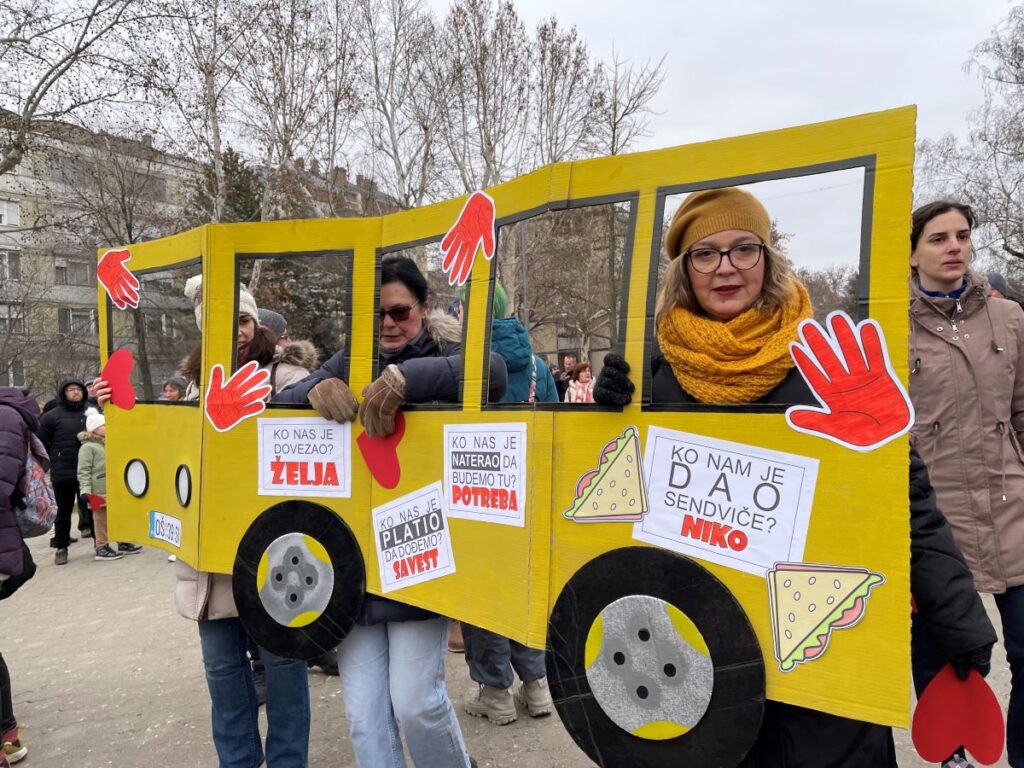 A tüntetésen Renata Srejić tanítónő beszédében azt mondta, két egyetemista gyermeke van, akiket valóban külföldről pénzelnek: “Mert az édesapjuk fizeti őket, aki külföldön dolgozik, hogy tisztességes életet biztosítson nekik. Úgy gondolom, ez sok család sorsa” – mondta Srejić.