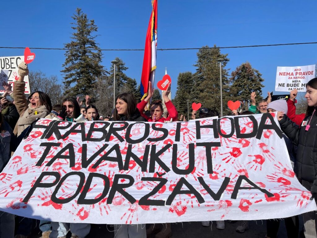 Így is fogadták őket Alsótavankúton is, örömkönnyekben. Az egyetemi hallgatókat transzparens várta: a bátorság sétál, Tavankút támogat. Óriási ováció kísérte a mintegy kétszáz főből álló tömeget, akik a faluba érkezést követően a helyi Matija Gubec Általános Iskolához mentek.
