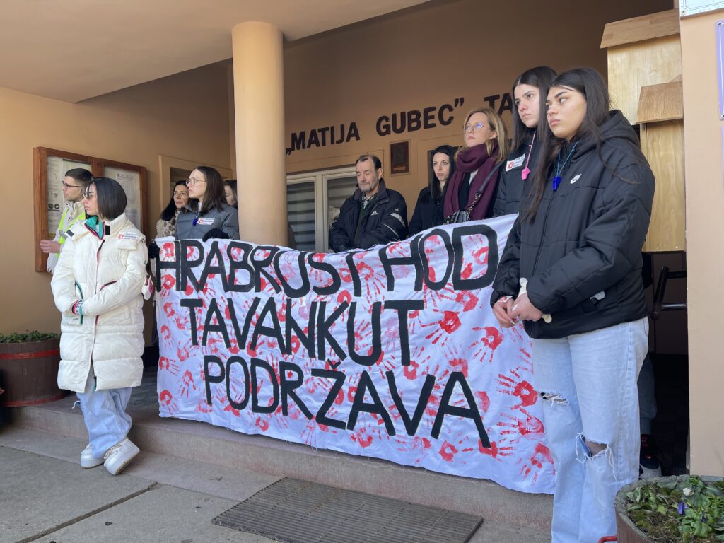 A Matija Gubec Általános Iskolában egyébként január 30-a óta törvényes sztrájkban van az egész tanári kar, vagyis 30 perces órákkal zajlik az oktatás. Slavko Benčik, az iskola kémiatanára, miután megköszönte a helyieknek és környékbelieknek a szervezést és a diákok fogadtatását, az egyetemi hallgatókat külön kiemelte.