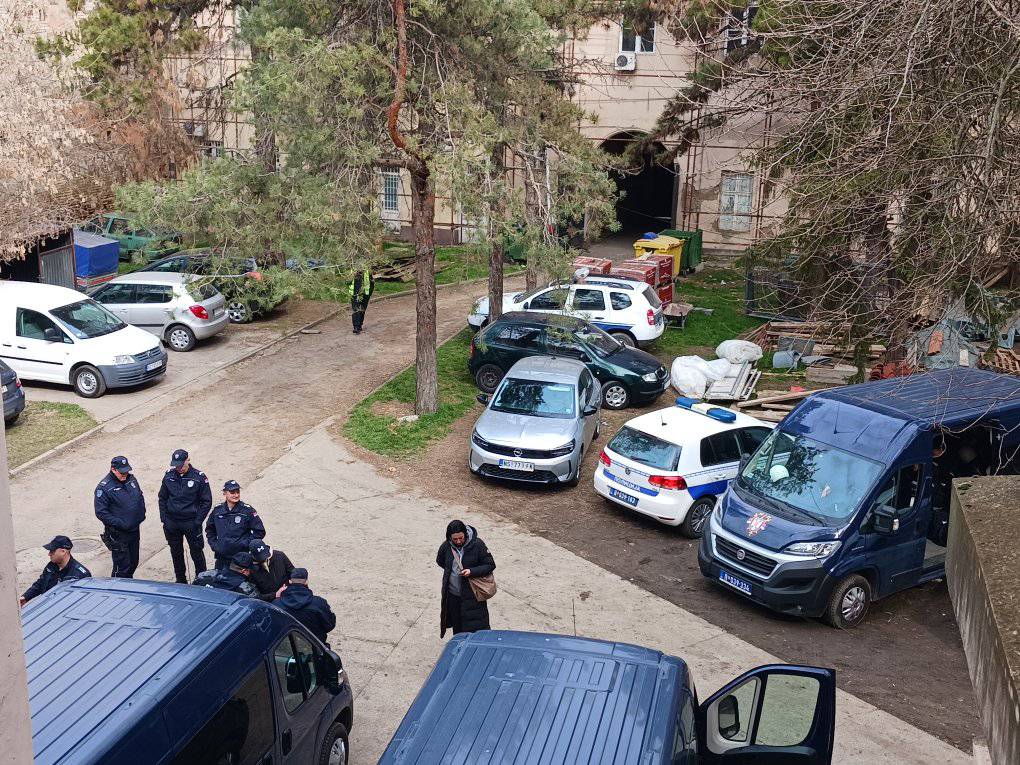 A községháza kapujánál kívül rendőrautó őrködött, az udvaron pedig rendőrök álltak készenlétben (Fotó: Bečejski mozaik)