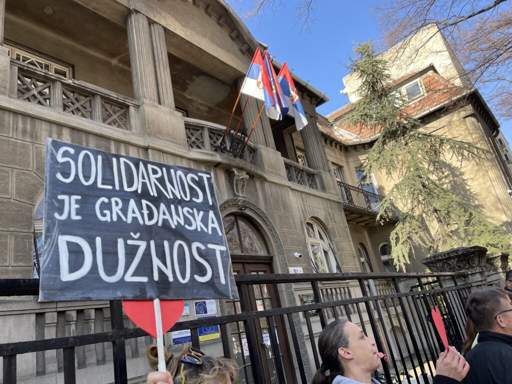 Azt követően a Sonja Marinković, az Ivan Milutinović, a Matko Vuković és az Ivan Goran Kovačić Általános Iskolák elé mennek. Ezek előtt nem fognak zajongani, hogy ne ijesszék meg a diákokat, hanem beszédeket tartanak majd, és piros szíveket feltartva énekelni fognak. Nem hivatalos értesüléseink szerint viszont ezekben az iskolákban az igazgatók rendelete alapján ma mindenki a délelőtt váltásban ment iskolába, s legfeljebb öt órájuk lesz, hogy mire a tüntetők odaérnek az intézményhez, senki se legyen a diákok közül az iskolában.