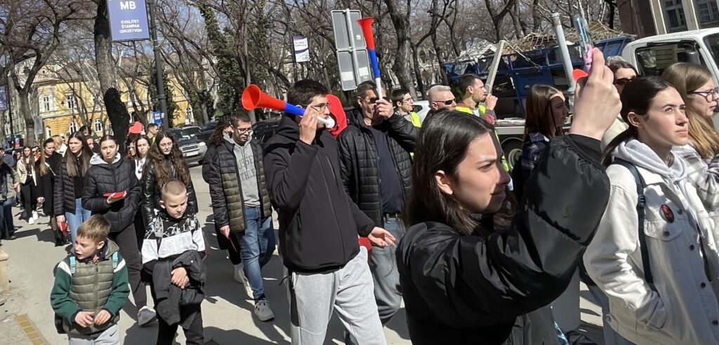 A szabadkai Bosa Milićević Közgazdasági Középiskola elől indultak első tiltakozó és támogató sétájukra a szülők, tanárok és diákok. Azért volt ez a séta első állomása, mert kedden délután döntött az iskola plénuma arról, hogy a diákok is csatlakoznak a blokádokhoz és kiállnak azok a tanáraik mellett, akik már több hete munkabeszüntetéssel küzdenek a jobb oktatási feltételekért és támogatjálk az egyetemi hallgatókat a követeléseikben.