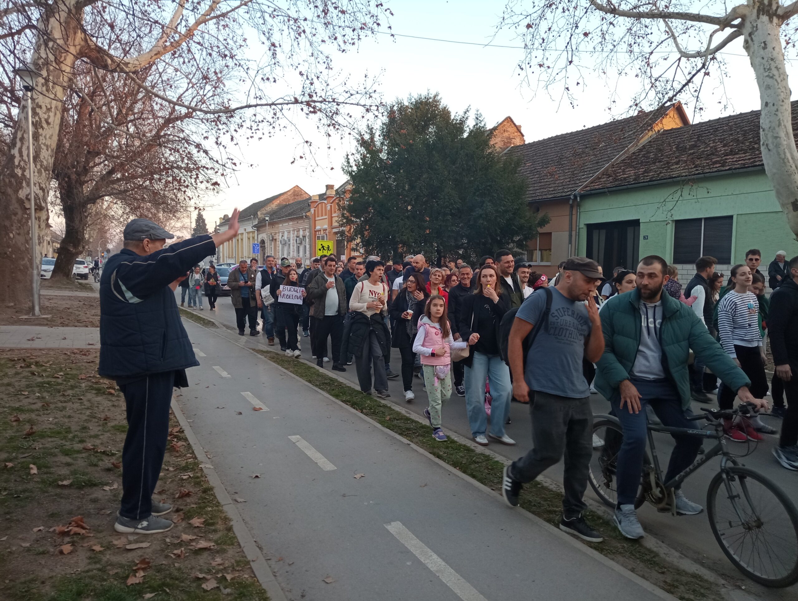 Minden eddiginél tömegesebb tüntetés volt pénteken délután Óbecsén: az Óbecse ébred nevű gimnazista csoport meghívására csütörtökön Nagybecskerekről, Szenttamásról, Verbászról, Zomborból gyalog érkeztek meg a középiskolások, akiket tűzijátékkal vártak be az óbecseiek. A mintegy 300 vendég a sportközpontban töltötte az éjszakát.