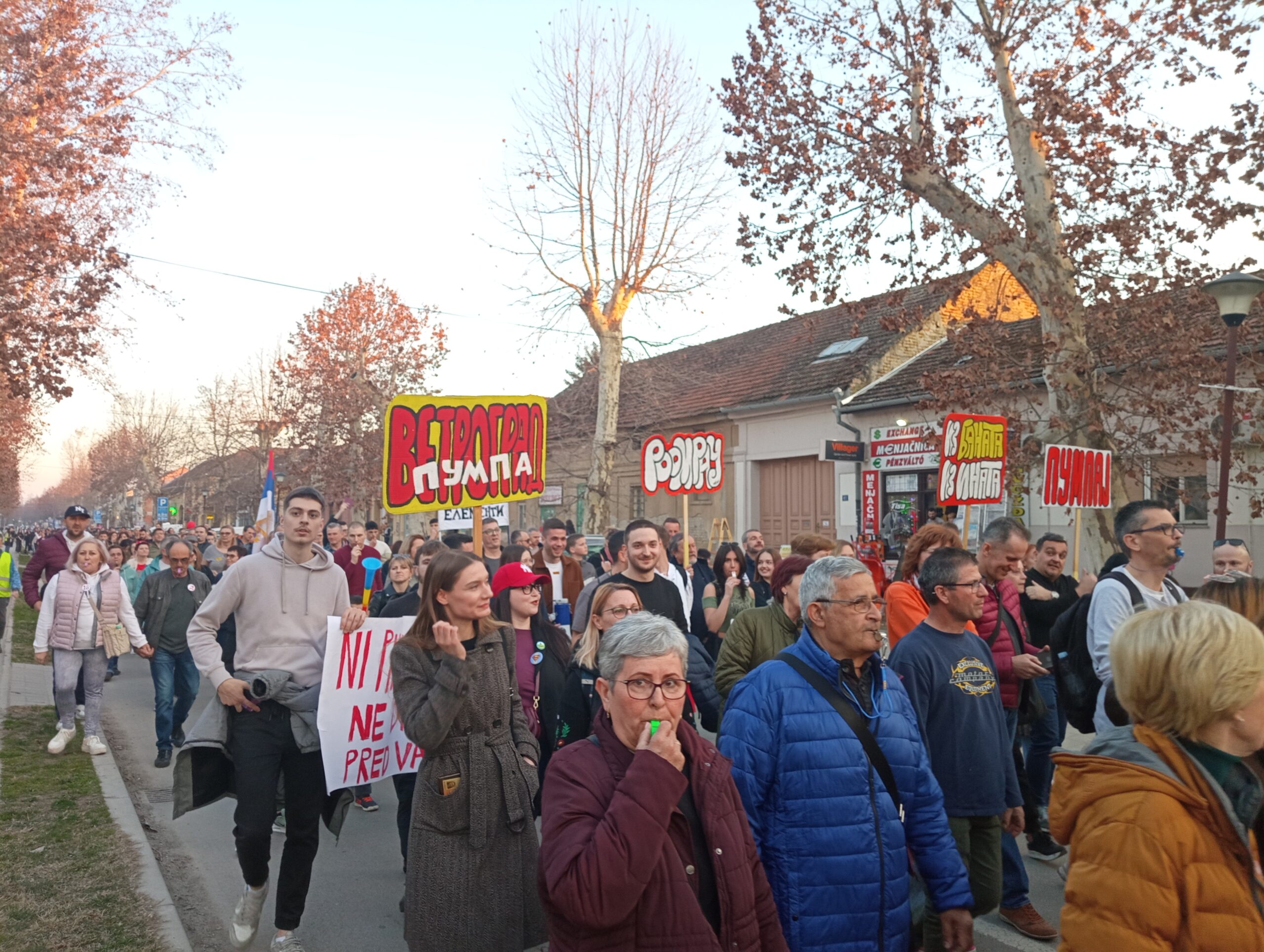 Minden eddiginél tömegesebb tüntetés volt pénteken délután Óbecsén: az Óbecse ébred nevű gimnazista csoport meghívására csütörtökön Nagybecskerekről, Szenttamásról, Verbászról, Zomborból gyalog érkeztek meg a középiskolások, akiket tűzijátékkal vártak be az óbecseiek. A mintegy 300 vendég a sportközpontban töltötte az éjszakát.