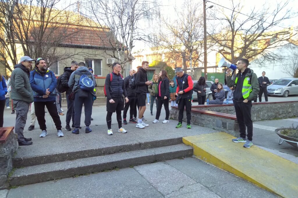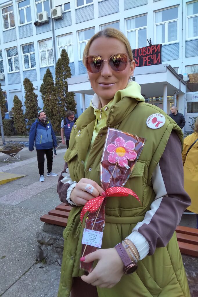 Ranka Kašiković, a Gerontológiai Központ dolgozója, akit politikai okokból zaklattak a munkahelyén, szintén a fiatalokkal gyalogol