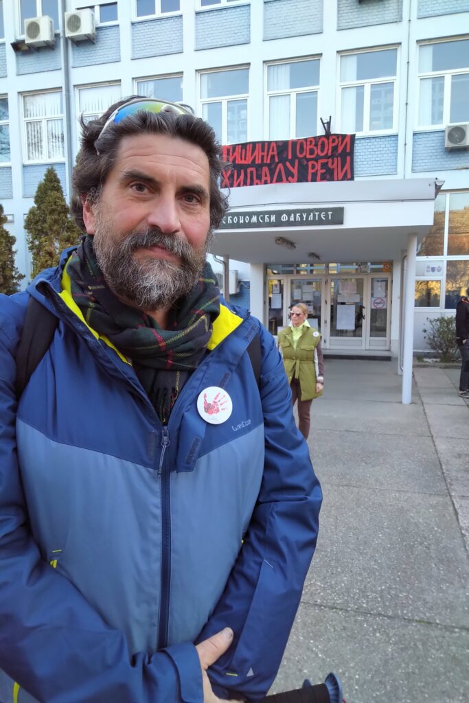 Az egyetemi hallgatókkal menetel dr. Papp Árpád néprajzkutató is, aki Topolyáig sétál a fiatalokkal, akiket minden követelésükben támogat. Arra a kérdésre, hogy valóban alábbhagyott-e a tiltakozások hangulata, lendülete, mint ahogyan azt a rezsim állítja, Papp a következőt mondta: