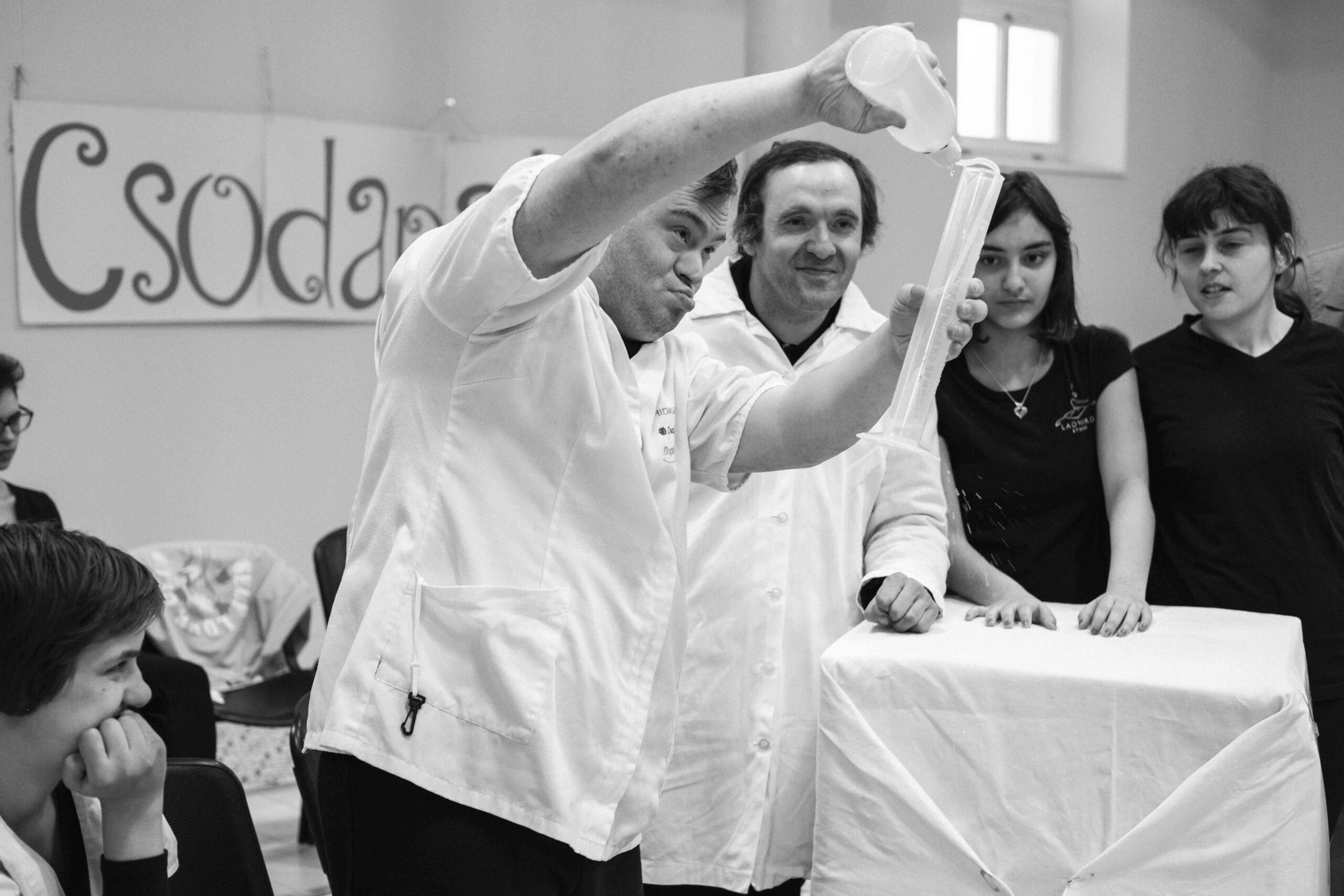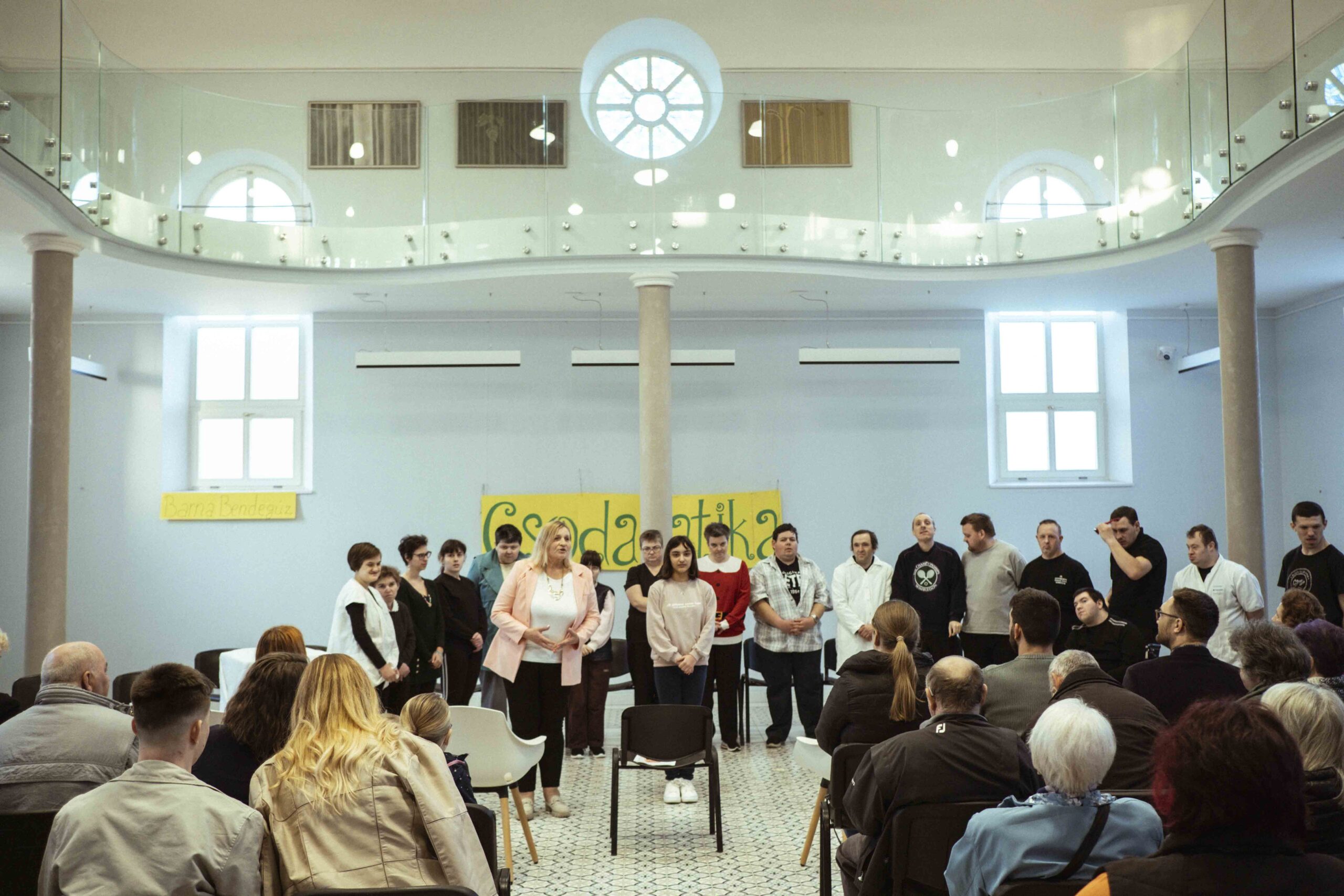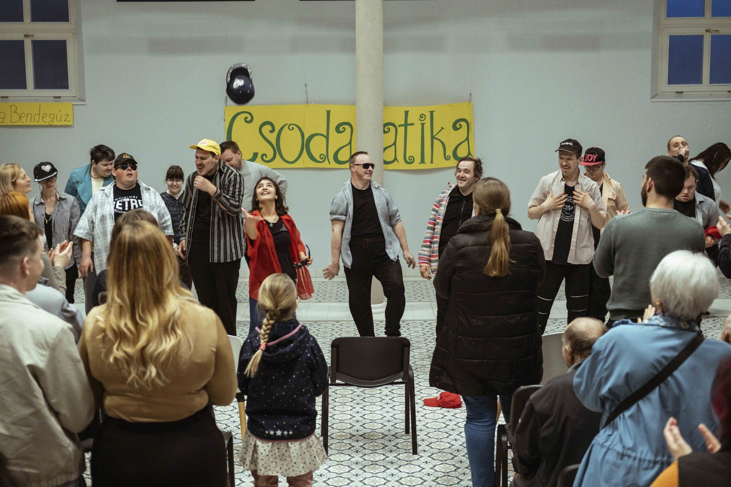 Így kezdődött a Csodapatika című mesejáték, amelyet a Zentai zsinagógában adtak elő a Kéz a kézben szervezet fiataljai. A végén a szereplők és a nézők együtt táncoltak.