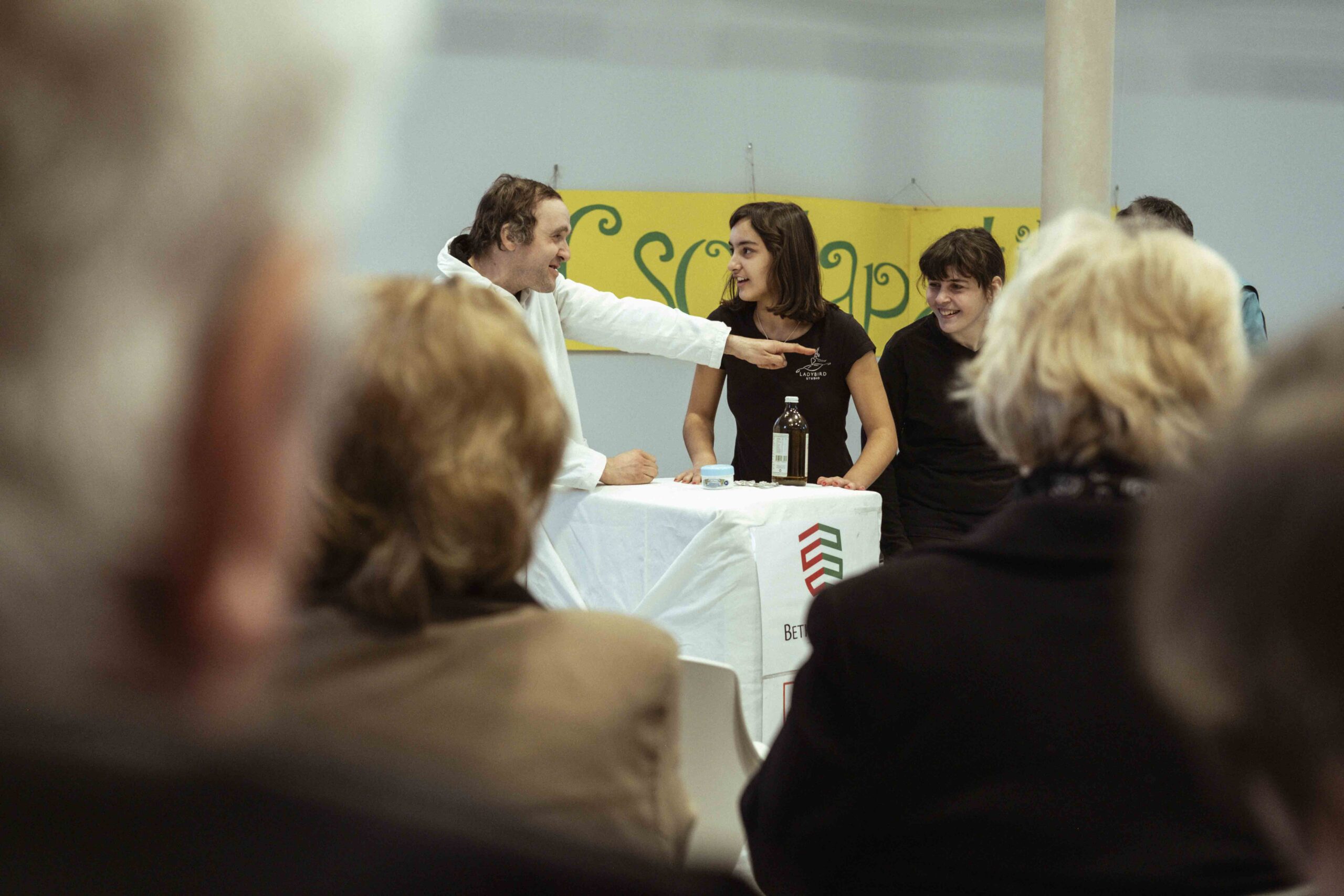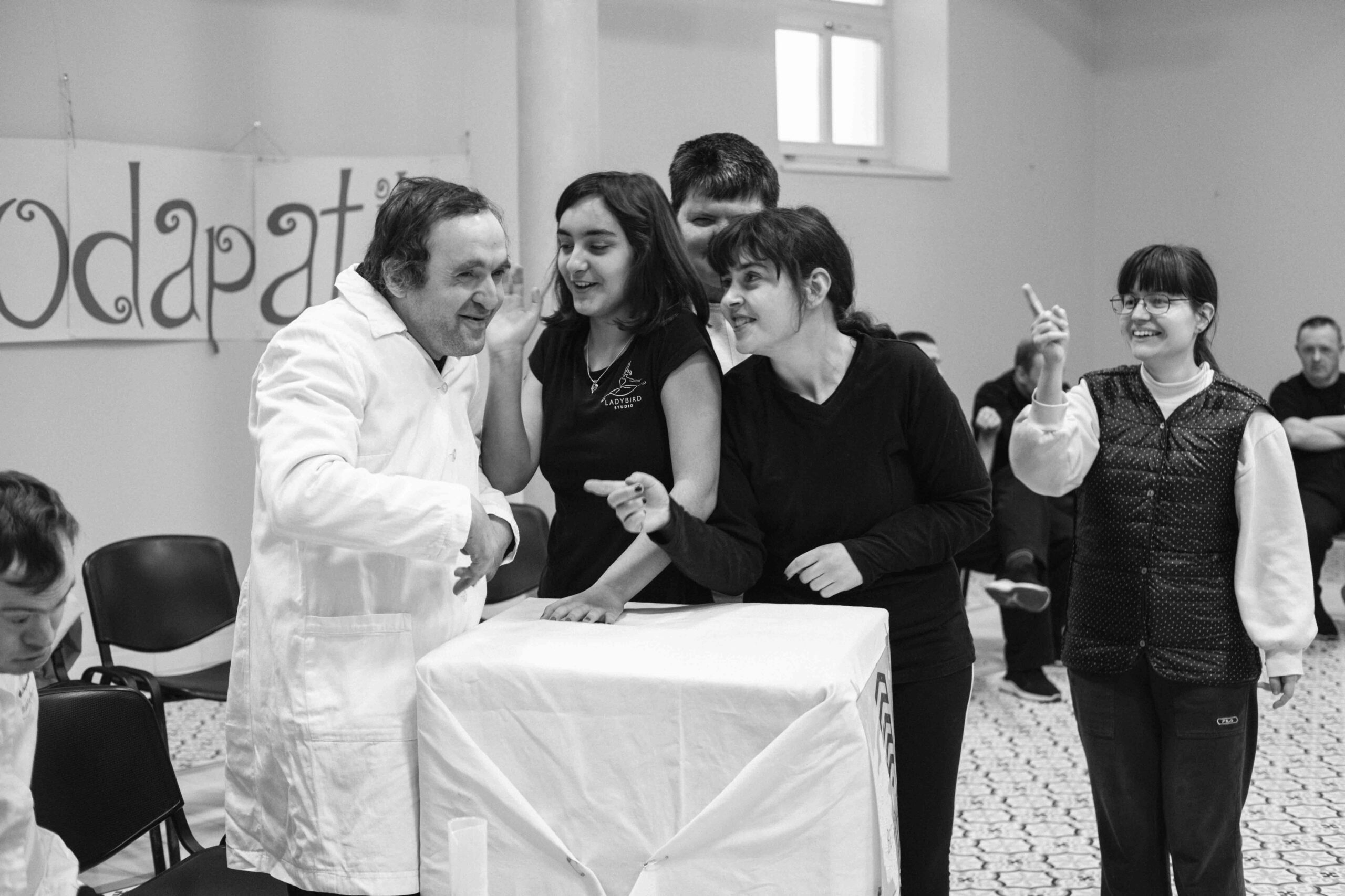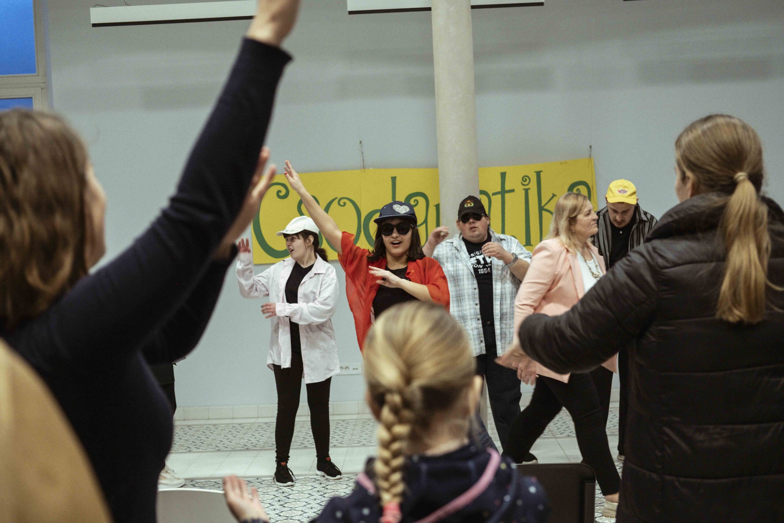 Így kezdődött a Csodapatika című mesejáték, amelyet a Zentai zsinagógában adtak elő a Kéz a kézben szervezet fiataljai. A végén a szereplők és a nézők együtt táncoltak.