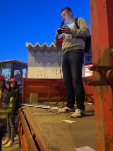 A beszédeket és a 15 perc csendet követően a mérnökök 15 piros lufit engedtek a levegőbe a 15 áldozat emlékére. A tömeg több alkalommal egyként skandálta: pumpáld!