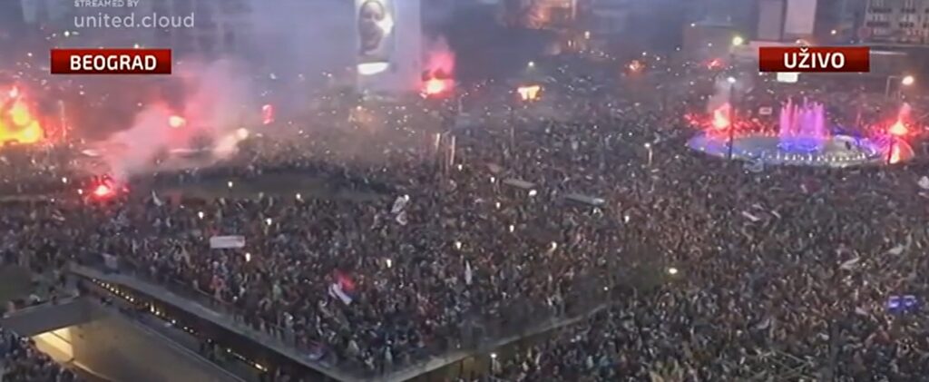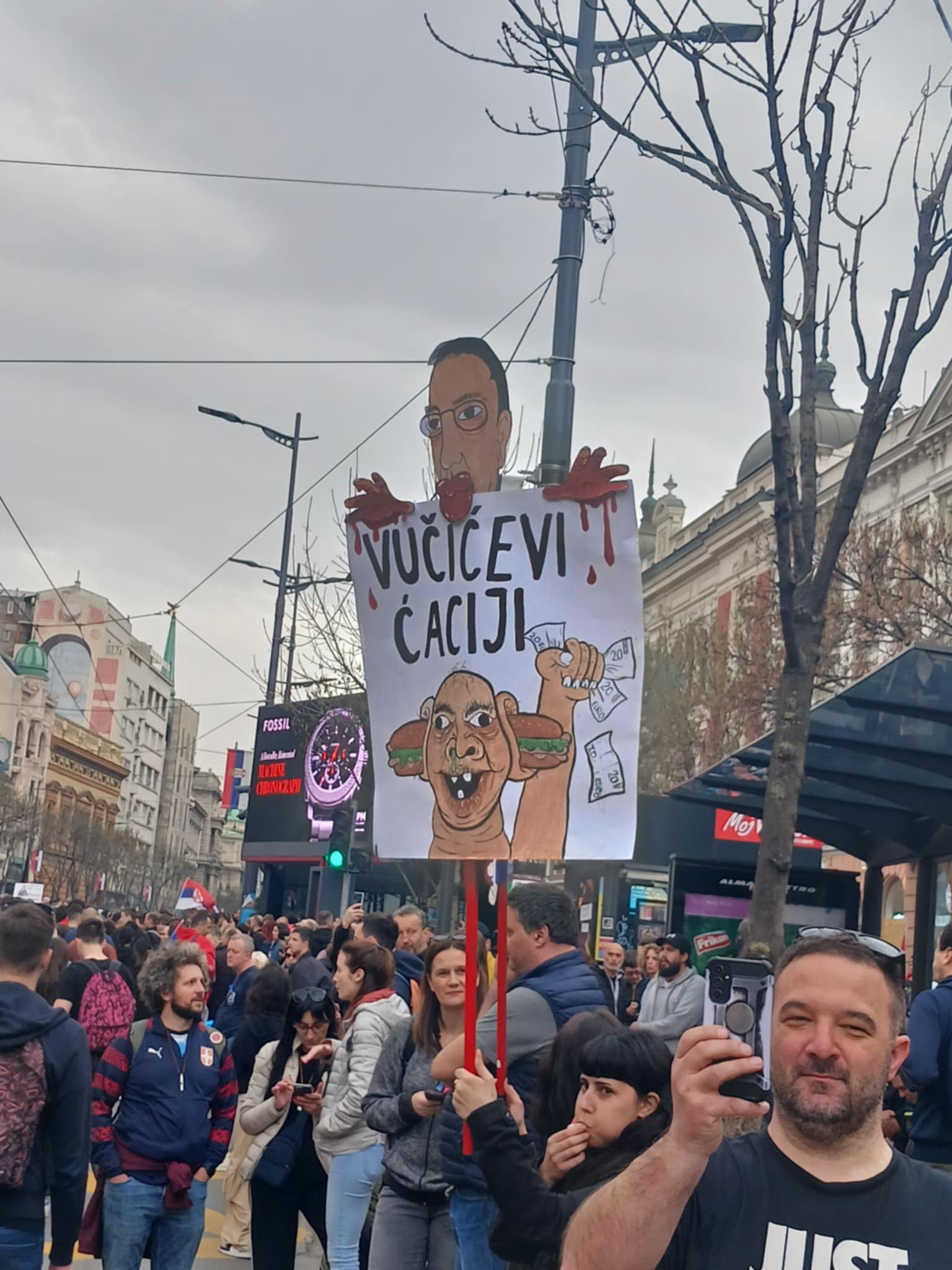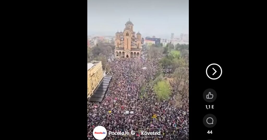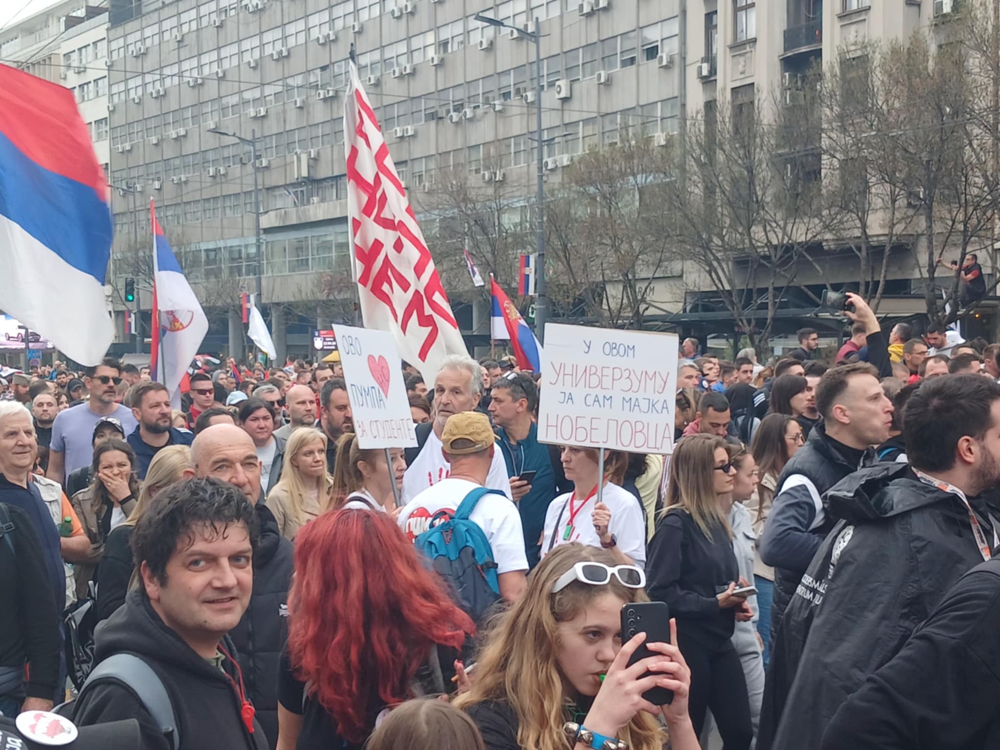 Március 15-én 16 órakor elkezdődött minden idők legnagyobb szerbiai tömegtüntetése, amelyet azok az egyetemisták szerveztek, akik november vége, december eleje óta blokád alá vonták a felsőoktatási intézményeket, s ezt addig nem hajlandók abbahagyni, amíg a hatalom nem teljesíti a követeléseiket. A szombati tüntetés a Köztársasági Parlament előtt zajlik, azzal, hogy a felszólalók a Slaviján mondanak beszédet, mivel ott állították fel a pódiumot.