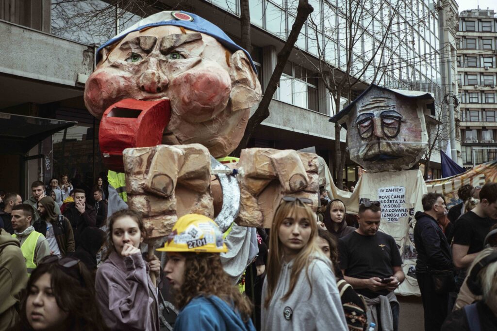 A Slavija téren egy improvizált színpadot állítottak fel, ahonnan a diáktüntetés résztvevői később beszédet mondanak. A színpadot a Deligradi utca elején helyezték el, a Slavija téren és a környező utcákban egyre több diák és polgár gyülekezik, akik a tüntetésre érkeznek.